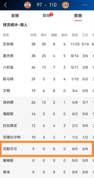湖人大将克勒贝尔又成为了球队的炮灰!尽管今天湖人在主场以110:97击败尼克斯,但是克勒贝尔再次扮演了炮灰的角色。 今天湖人在主场赢了尼克斯,这场比赛没有詹姆斯上场,球队靠着整体发挥拿下了胜利,赛后大家讨论的大多是发挥出色的核心球员,很少有人提到克勒贝尔,可他在场上的作用,却一点都不能少,只是又一次成了球队赢球背后的炮灰。 克勒贝尔本赛季一直受伤病困扰,上场时间不多,大多时候都是在轮换阶段出场,做着最不起眼的工作。 这场和尼克斯的比赛,第二节的时候,湖人换上了克勒贝尔、彪哥和斯玛特组成的防守阵容,这段时间里,他们主要的任务就是防守,限制尼克斯的进攻。 克勒贝尔在其中拼得很凶,不管是卡位抢篮板,还是协防干扰对手投篮,都拼尽全力,就是这样的防守,帮湖人稳住了当时的局势,还净赢了对手不少分数。 比赛过程中,克勒贝尔还出现了小意外,鼻子被尼克斯球员唐斯打中,流了血,但他简单处理后,就继续回到场上打球,没有丝毫退缩。 这种拼劲,其实就是他平时打球的常态,不管上场时间多短,不管任务多繁重,他从来不会敷衍。 熟悉克勒贝尔的人都知道,他从来都不是那种能拿高分、刷漂亮数据的球员,他的价值,从来都体现在那些看不到的数据里。 就像之前的比赛里,他哪怕上场时间很少,正负值也常常是全队最高的,这场比赛也是一样,他没有亮眼的得分表现,却在防守端填补了球队的很多漏洞,尤其是在主力内线需要休息的时候,他顶上去,用灵活的防守脚步限制对手,帮球队守住禁区。 队友八村塁之前就说过,克勒贝尔在防守端的沟通和协防意识,是大家学习的榜样,不管他上场与否,总能给球队带来拼劲。 可就是这样一位对球队有贡献的球员,每次赢球后,都很容易被忽略,大家都在夸赞核心球员的得分能力,夸赞其他角色球员的关键发挥,却没人记得,克勒贝尔在场上默默卡位、犯规、抢篮板,为球队的防守筑牢防线。 这场比赛湖人能顺利赢下,离不开核心球员的爆发,也离不开像克勒贝尔这样的炮灰球员的付出。 他不需要太多关注,也不需要华丽的数据,只要球队能赢球,他愿意做最脏最累的活,愿意一次次扮演炮灰的角色。 其实对湖人这样志在争冠的球队来说,这样的球员必不可少,他们就像球队的基石,默默支撑着球队前进,哪怕永远不会成为聚光灯下的主角,也始终全力以赴。 以上都是个人观点,对此您有什么不同的看法,可以在评论区留言讨论!!!