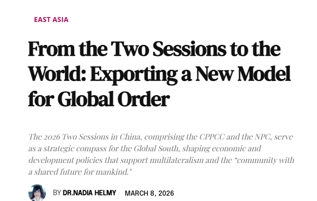 欧洲《现代外交》网站3月8日刊载埃及本尼苏伊夫大学副教授纳迪亚·赫尔米博士的评论文章称,2026年中国两会为全球南方国家提供了战略指南,会议制定了支持多边主义和推动构建人类命运共同体的经济发展政策。会议推动南南合作,促进可持续发展,并提供了基于伙伴关系和互利共赢的全球治理新模式。