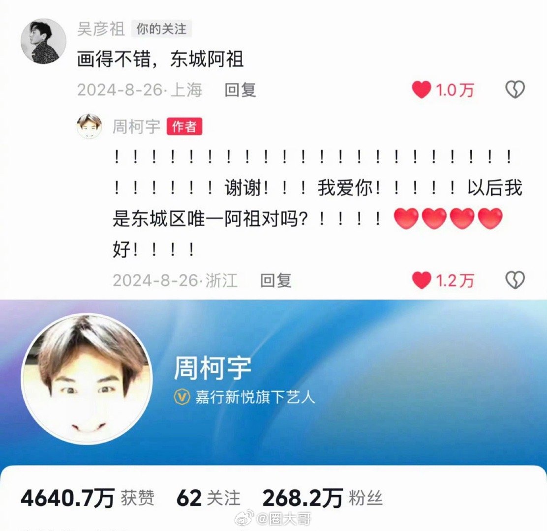 周柯宇吴彦祖风华合伙人路透周柯宇和吴彦祖在《风华合伙人》的路透来了,两代男神热聊,画面感看起来也太美好了叭!不得不说,周柯宇和吴彦祖同框有种在拍电影的既视感啊,期待周柯宇能和偶像来场影视合作啦!周柯宇吴彦祖热聊