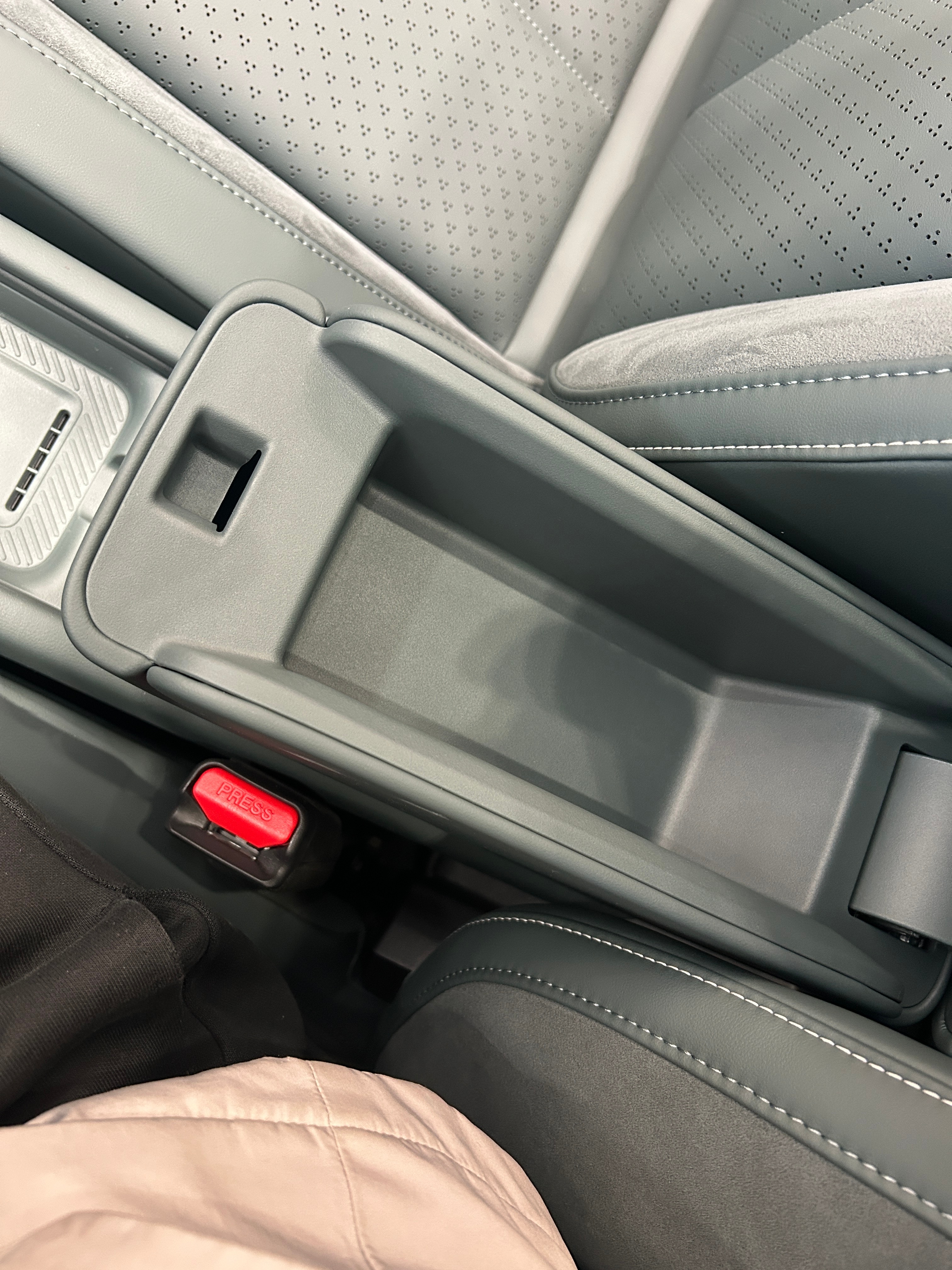 然后储物空间以及后备箱空间都还行,后排座椅底下也能放点东西,中岛部分储物有点浅,手套箱倒是很大,放个笔记本电脑进去没问题的,唯一就是不知道前排扶手那个中岛能不能DIY,如果能的话就会最好了。