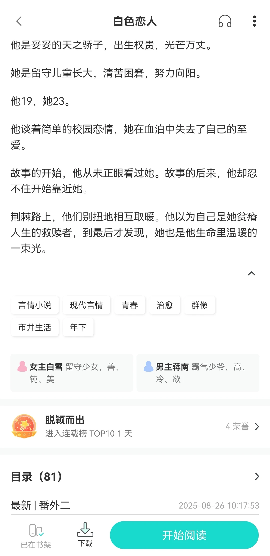 真的很好看写的很好 好久没看过这么上头的文了呜呜呜呜呜有段看哭我了但是也好甜好甜!!!