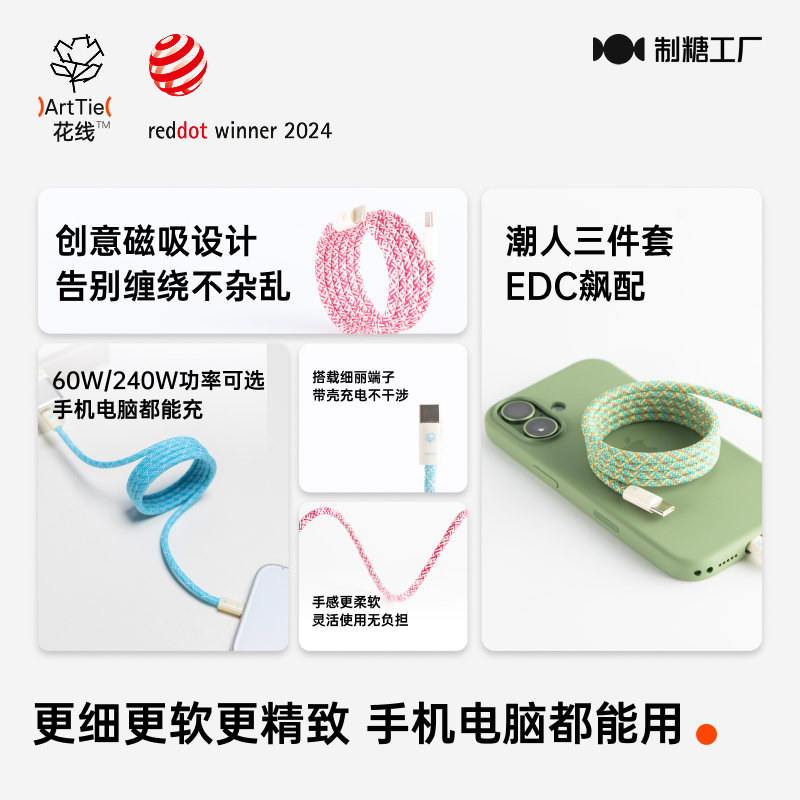 制糖工厂于2025年10月正式推出了名为“贴贴线·花线”的全新品类产品。该产品属于品牌旗下“贴贴线”系列的新成员,定位为创新品类的工艺线材,旨在为消费者提供更具趣味性和互动性的体验,包含色彩丰富、装饰性强或可自由组合的创意元素。首期花色以“城市文化×可穿戴艺术”为理念,将非遗纹样(红白蓝、花砖、唐卡)编织入线体,支持快充+磁吸收纳。第二期与【广东粤剧院】联名,以【白蛇传·情】人物为灵感,推出粤剧系列花线,各有特色。制糖工厂花线 ArtTie 艺术编织全磁吸贴贴线粤剧院联名