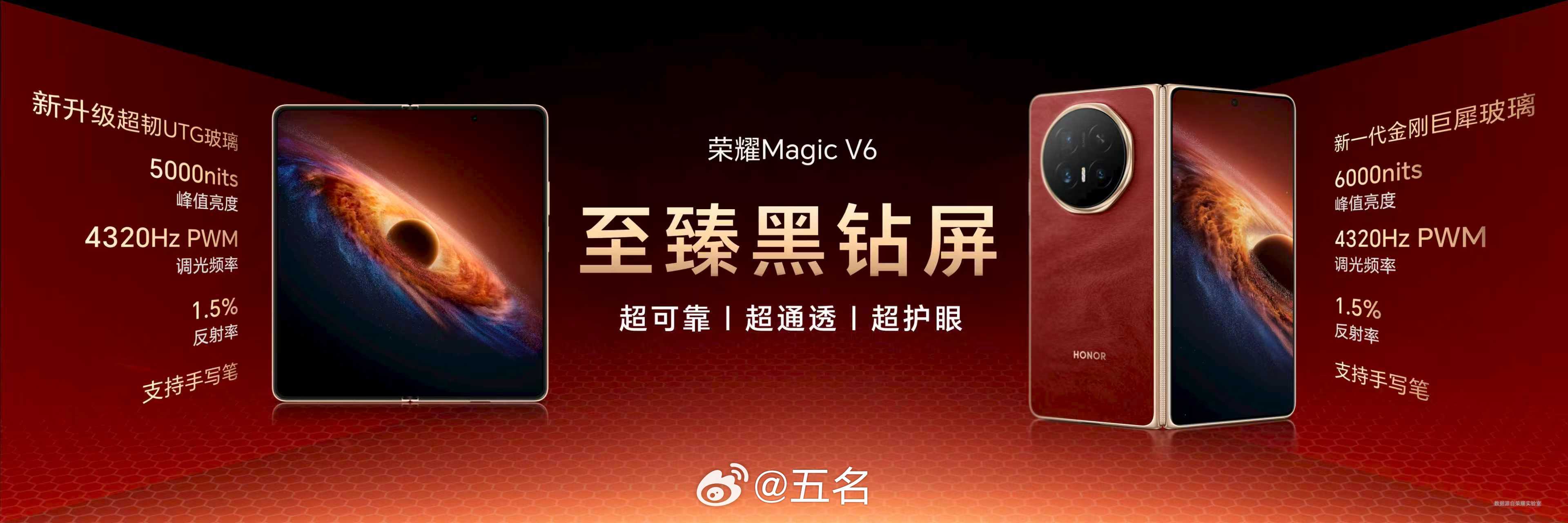 荣耀Magic V6 采用新一代超韧UTG玻璃,折痕相比上一代产品改善44%,并通过了SGS无感知折痕认证,平到极致似没折。同时具备三层防护,内屏抗冲击力提升33%。