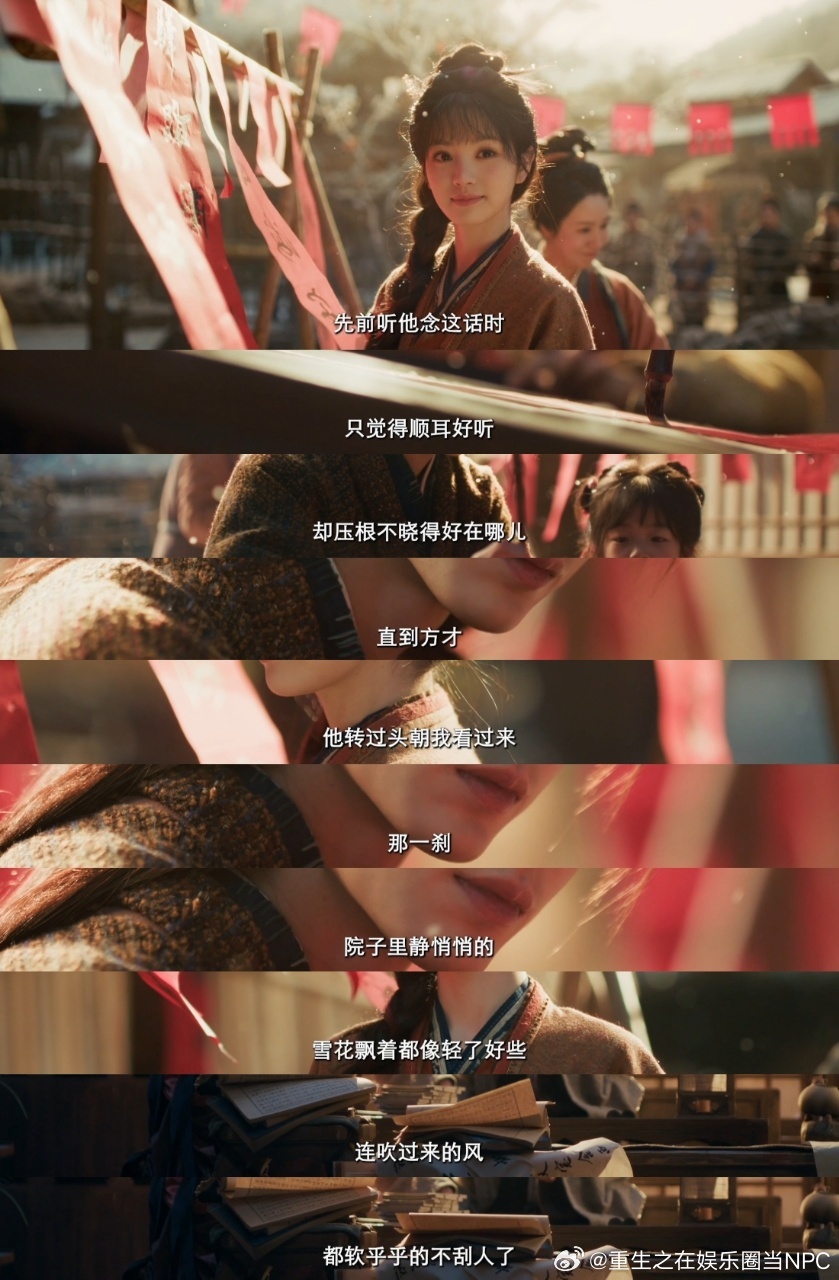 樊长玉台词 长玉好会形容心动💓 “先前听他念这话时,只觉得顺耳好听,却压根不晓得好在哪儿。直到方才,他转头朝我看过来,那一刹,院子里静悄悄的,雪花飘着都像轻了许多,连吹过来的风,都软乎乎的不刮人了~”,“原来人真正高兴起来,心是会响的”逐玉