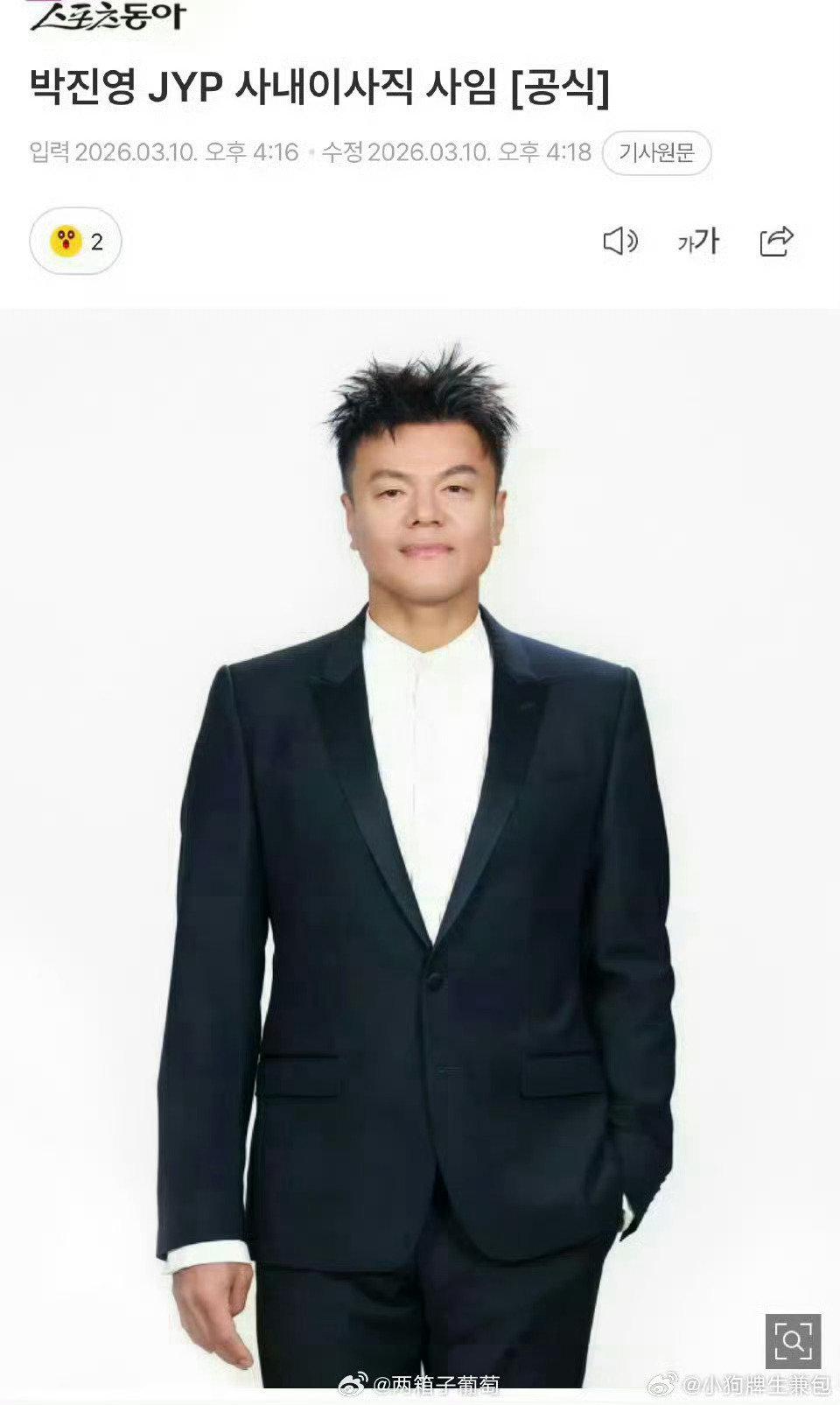 JYP考公上岸了?娱乐教父跨界体制,人生剧本再升级 2026年3月9日,一条JYP考公上岸了的热搜直接炸翻全网 。韩国娱乐巨头JYP娱乐创始人朴振荣,被正式任命为总统直属“大众文化交流委员会”共同委员长,堪称现实版“从娱乐圈老板到国家智囊” 。 这波操作有多绝?此前他突然辞去公司内部管理职,本以为是隐退,实则是“上岸”搞大事。虽非传统公考录用,但以顶级专业身份进入高层公职,正契合网友玩梗的“考公上岸”梗 。 50多岁身家千亿,仍选择跨界担责,被调侃“宇宙尽头是编制”。他表示虽有压力,但为K-pop全球化机遇毅然接受 。 从造星巨头到文化交流掌舵人,JYP用实力证明:人生没有终点,只有不断升级的新赛道!