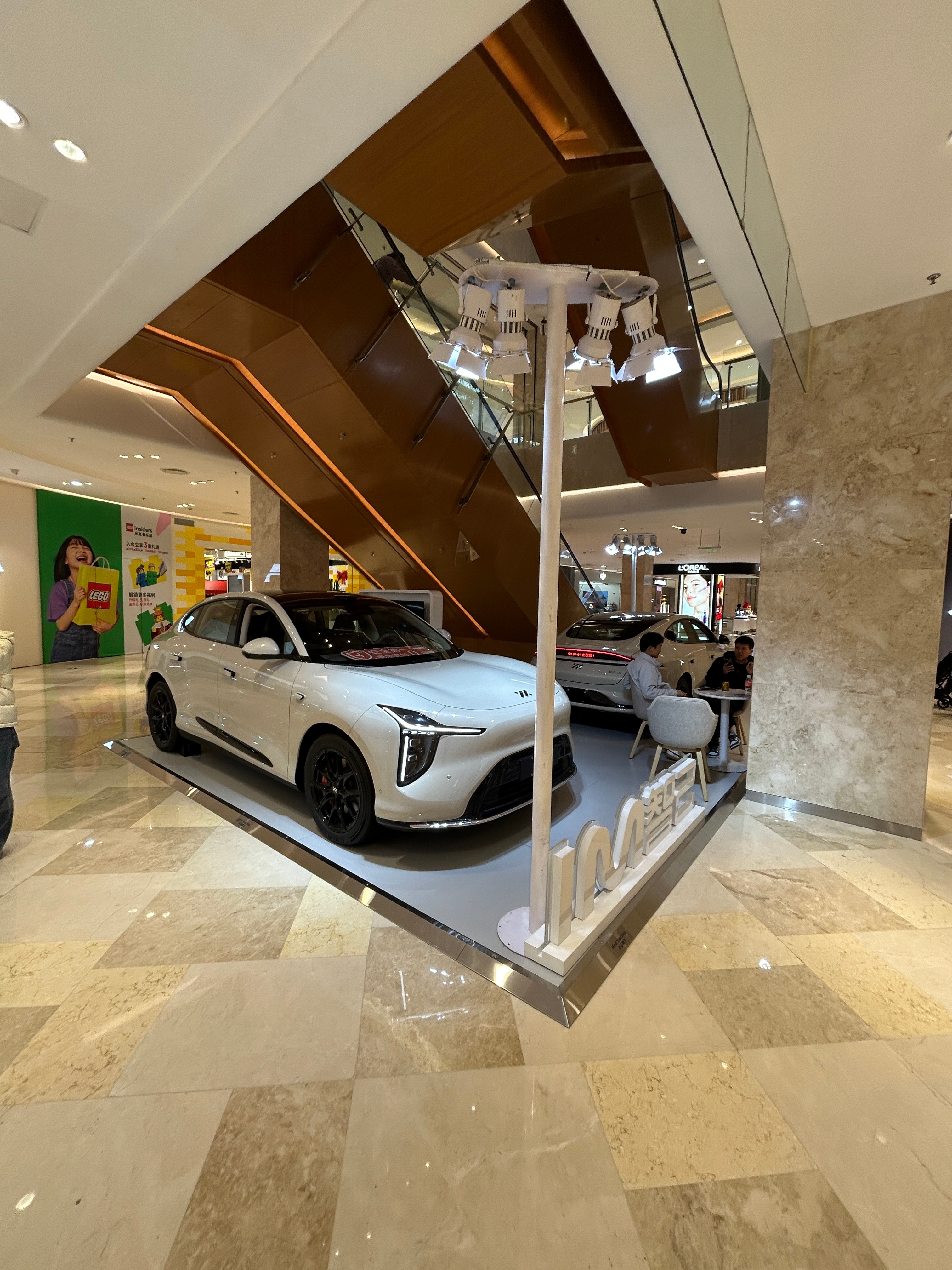 现在的商城一层配置,哈哈哈哈哈全都是新能源车,就像进了汽车城一样。