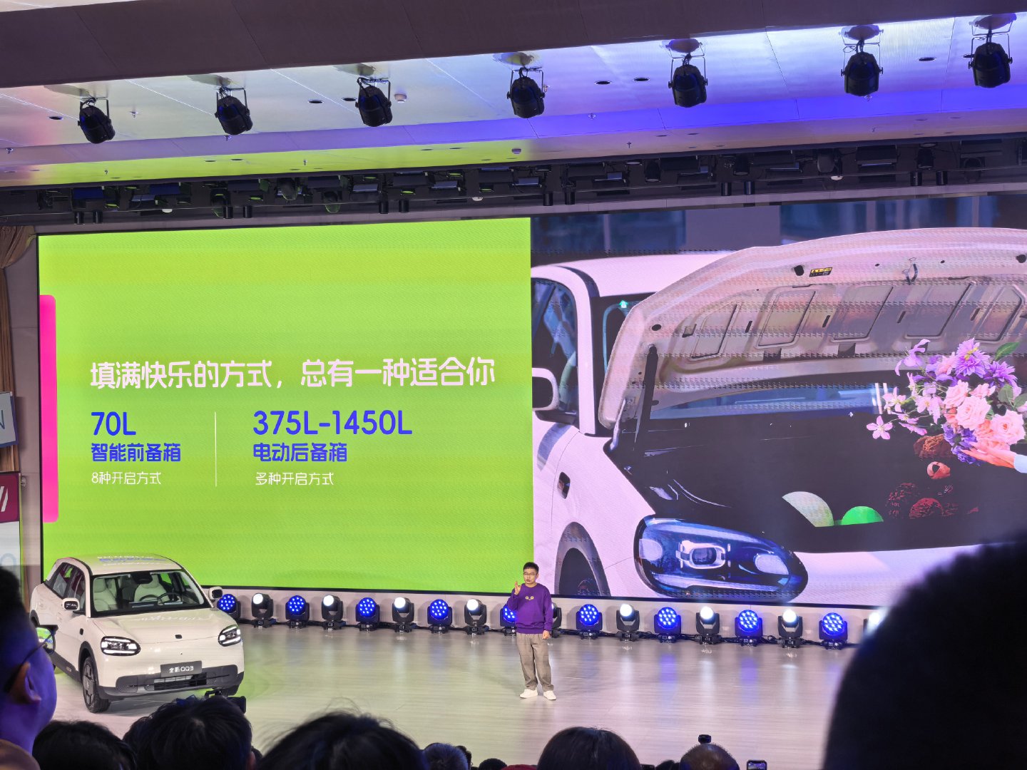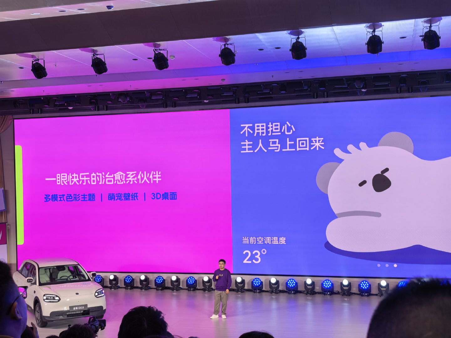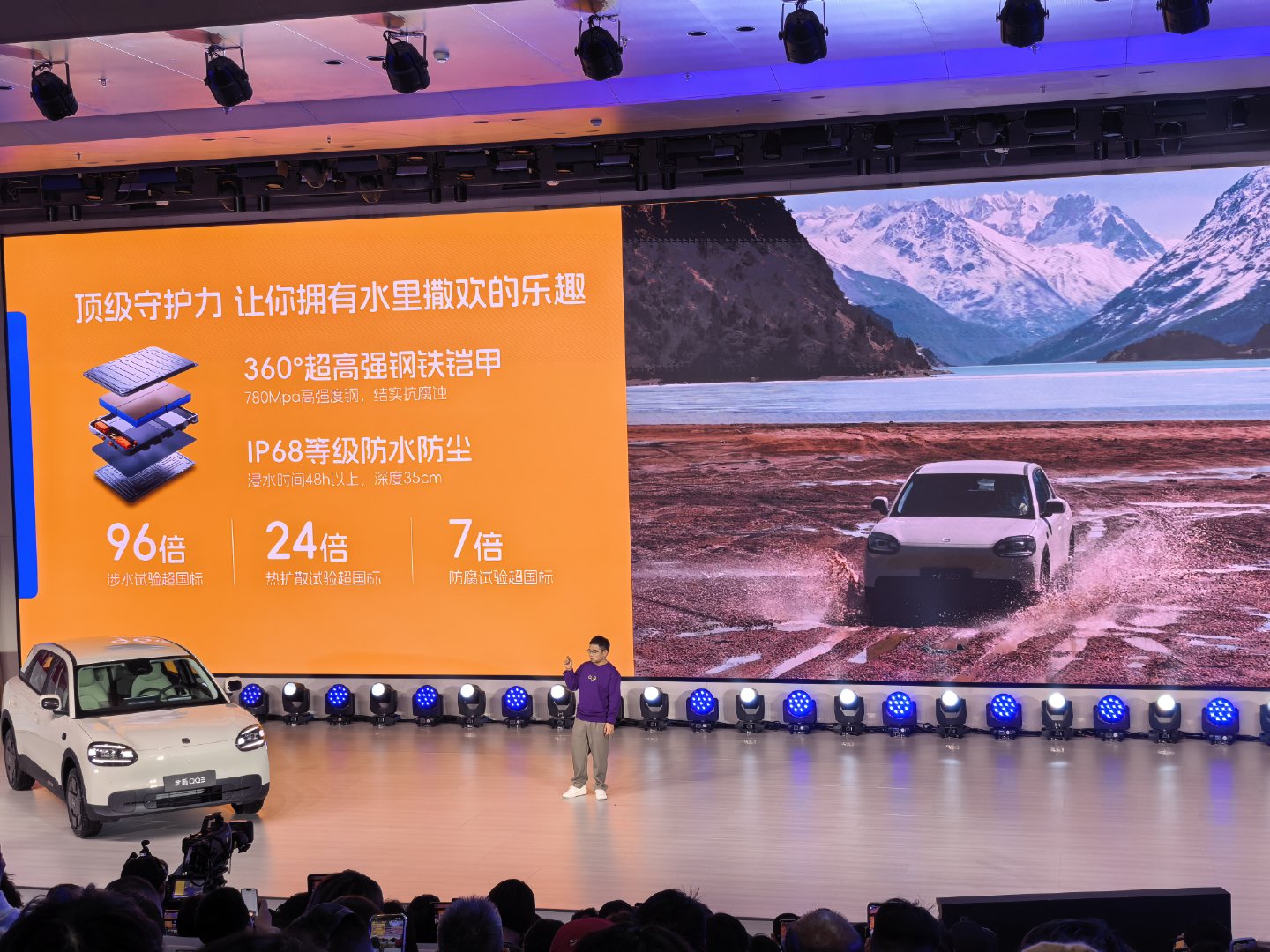 IP68防水防尘、1300Mpa热成型钢,还有6个安全气囊,前后排头顶腿都能放开,还有6.6kW外放电,周末去山里煮茶太合适了~车机还有治愈系萌宠壁纸,后驱+独立悬架过弯也稳,好心动全新qq3