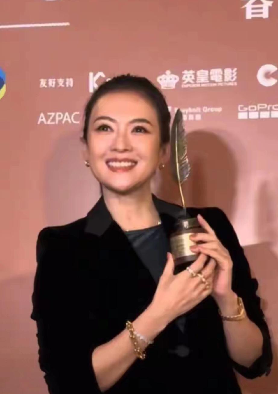 章子怡香港再夺大奖!颜值回春状态封神,有望三封金像奖 章子怡亮相香港电影编剧协会春茗晚宴,凭《酱园弄》斩获最佳电影角色奖,该奖项是金像奖风向标,离三封影后更近一步!她身着黑丝绒西装搭配墨绿真丝裙,优雅贵气,肌肤紧致光滑状态回春。 现场亲吻奖杯难掩喜悦,学女儿醒醒比心嘟脸,俏皮又可爱。手腕33万积家腕表、蒂芙尼手镯尽显格调,离婚后的她褪去棱角,温柔又笃定,演技与状态双双在线,期待再创佳作! 章子怡仪态 章子怡红毯战神