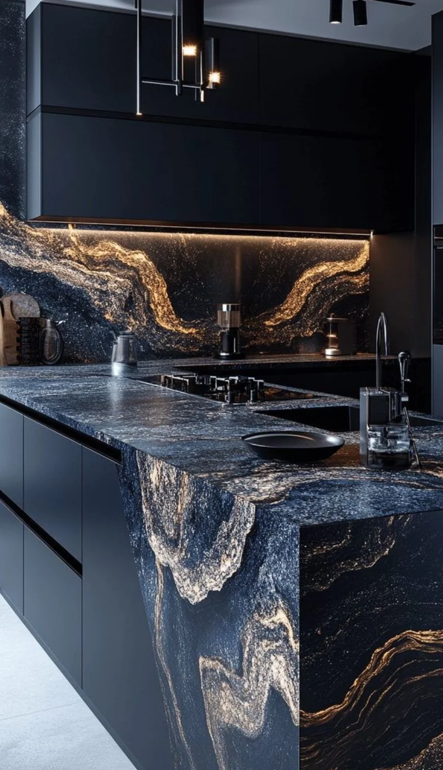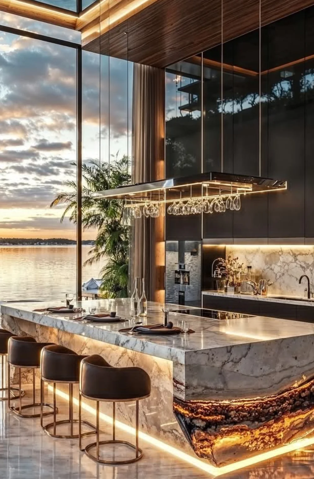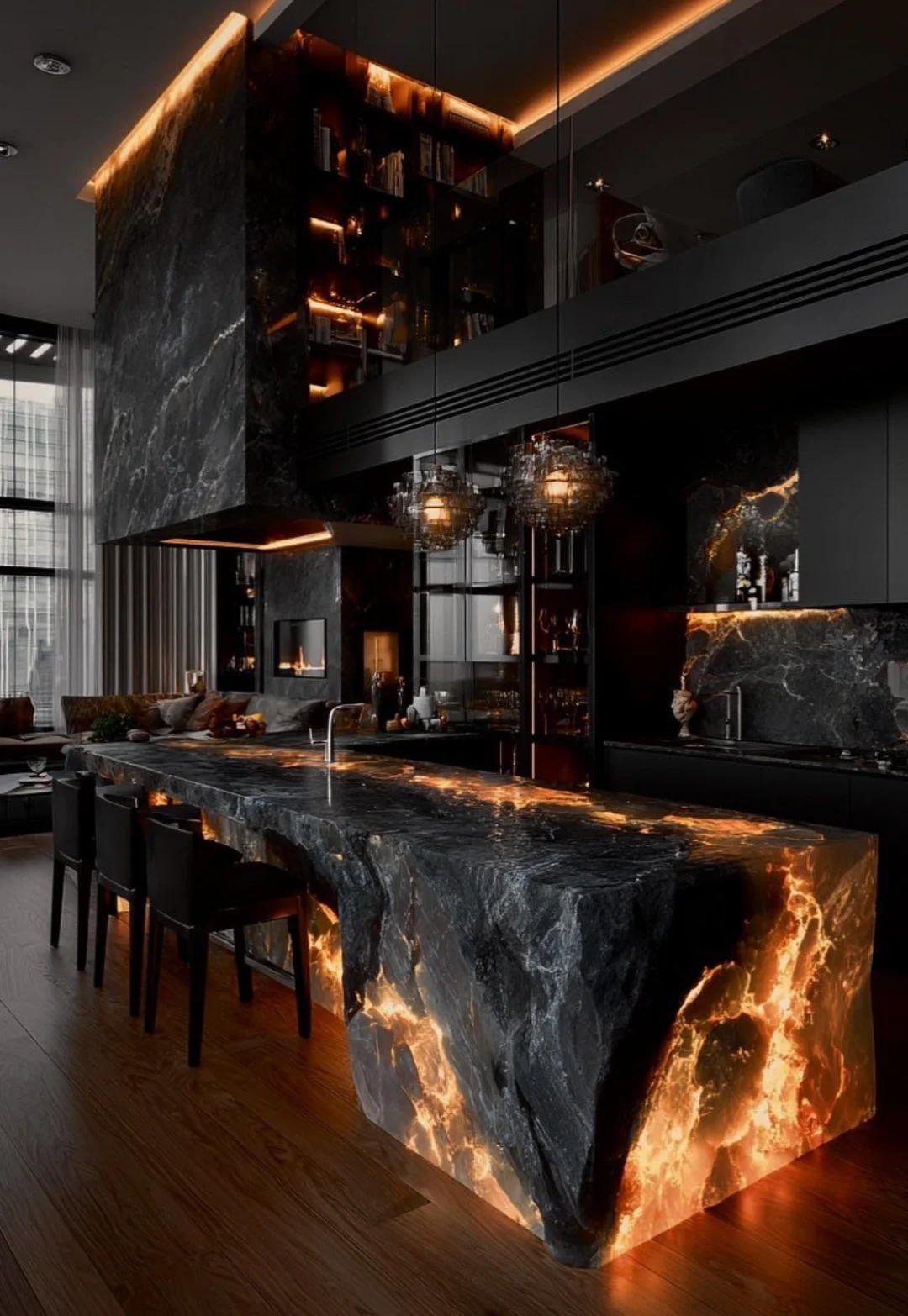 - 透光玉石/玛瑙:内部嵌入灯带,让纹理在光影中流动,像把流动的星河封进台面。