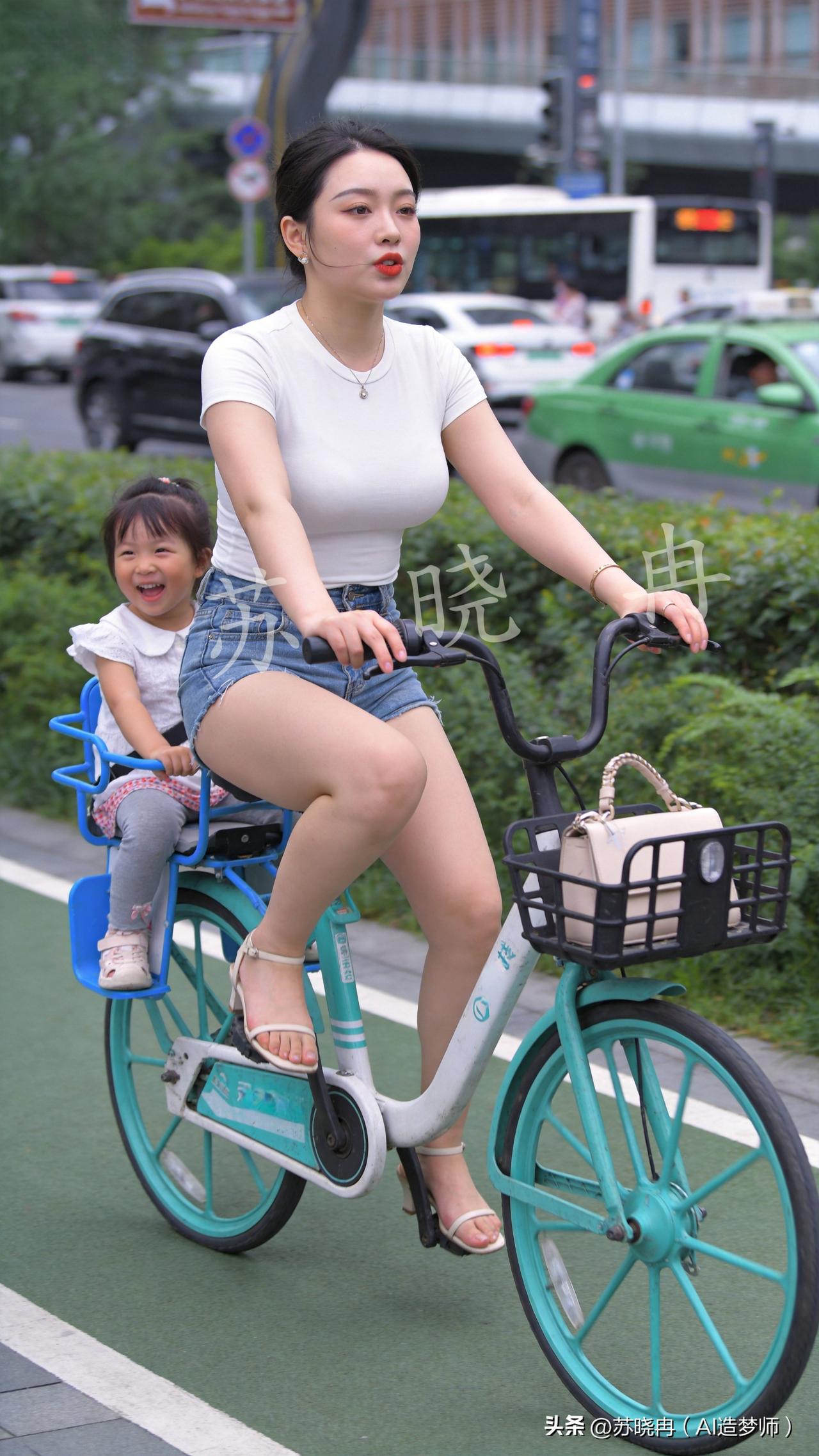 路边看到一辆能载娃的共享单车,她几乎想都没想就扫码了。 一瞬间想起小时候,自己坐在妈妈二八大杠上的日子,那是最踏实的童年记忆。 她也想让女儿,体验一回当年那种被载着吹风的简单快乐。 过去的二八大杠,娃娃可以直接坐在大人身前, 现在的自行车,小丫头只能乖乖坐在后面,一会儿念叨着要看小狗,一会儿又惦记着冰淇淋,小嘴巴停不下来。 风轻轻吹着,从前妈妈载她长大,如今她载着小棉袄前行。 写真人像摄影 亲子的美好时光 带娃自行车兜风 苏晓冉