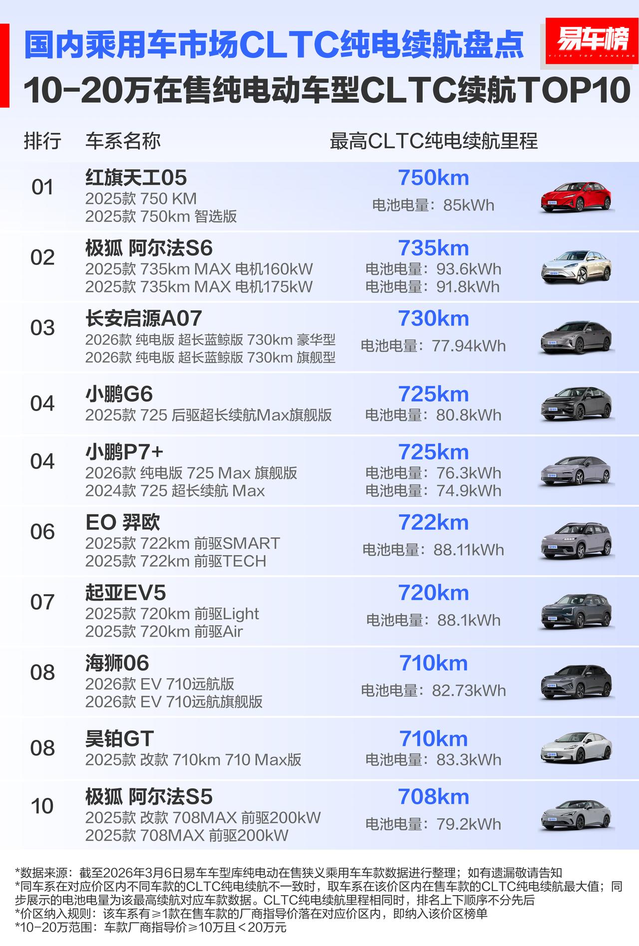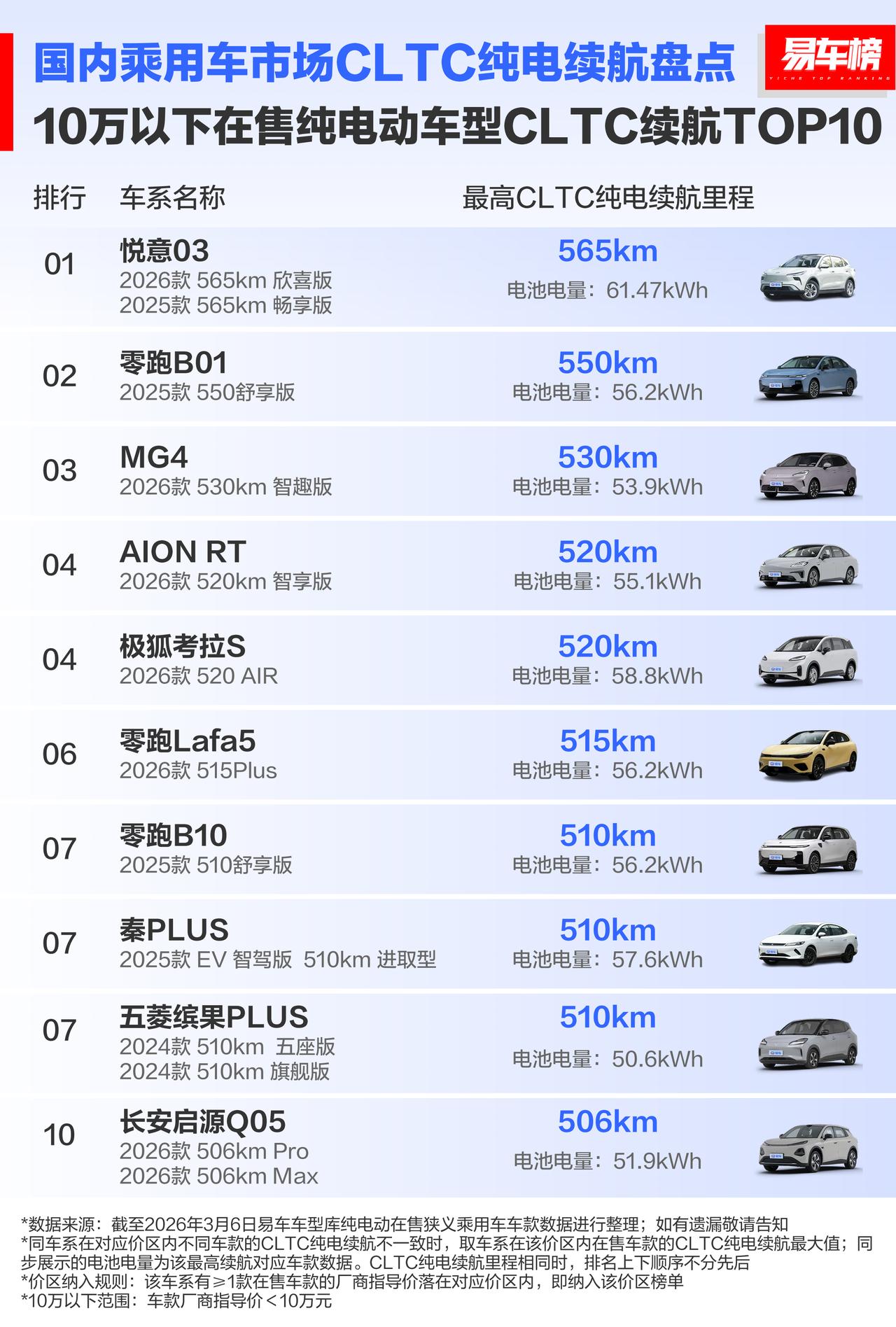 续航是决定电车价值的一个重要因素,各价区在售纯电动车型CLTC续航盘点:(图:易