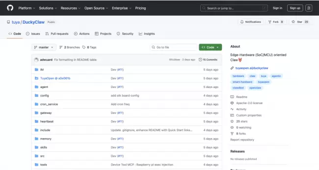 开源地址:https://github.com/tuya/DuckyClaw