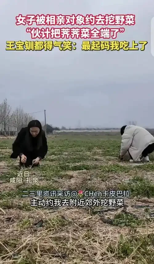 长这么大从没听说约会要去挖野菜,女孩一开始有点抗拒,但转念一想,或许对方是个老实本分、喜欢接地气生活的人,觉得挖野菜既能放松又能聊天增进了解,也就没好意思拒绝。