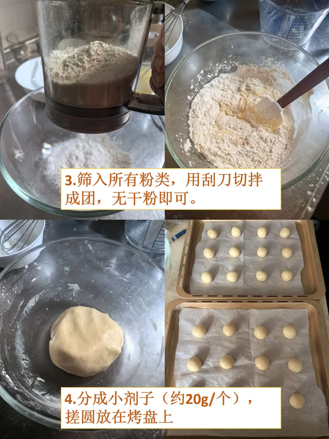3. 筛入所有粉类,用刮刀切拌成团,无干粉即可。