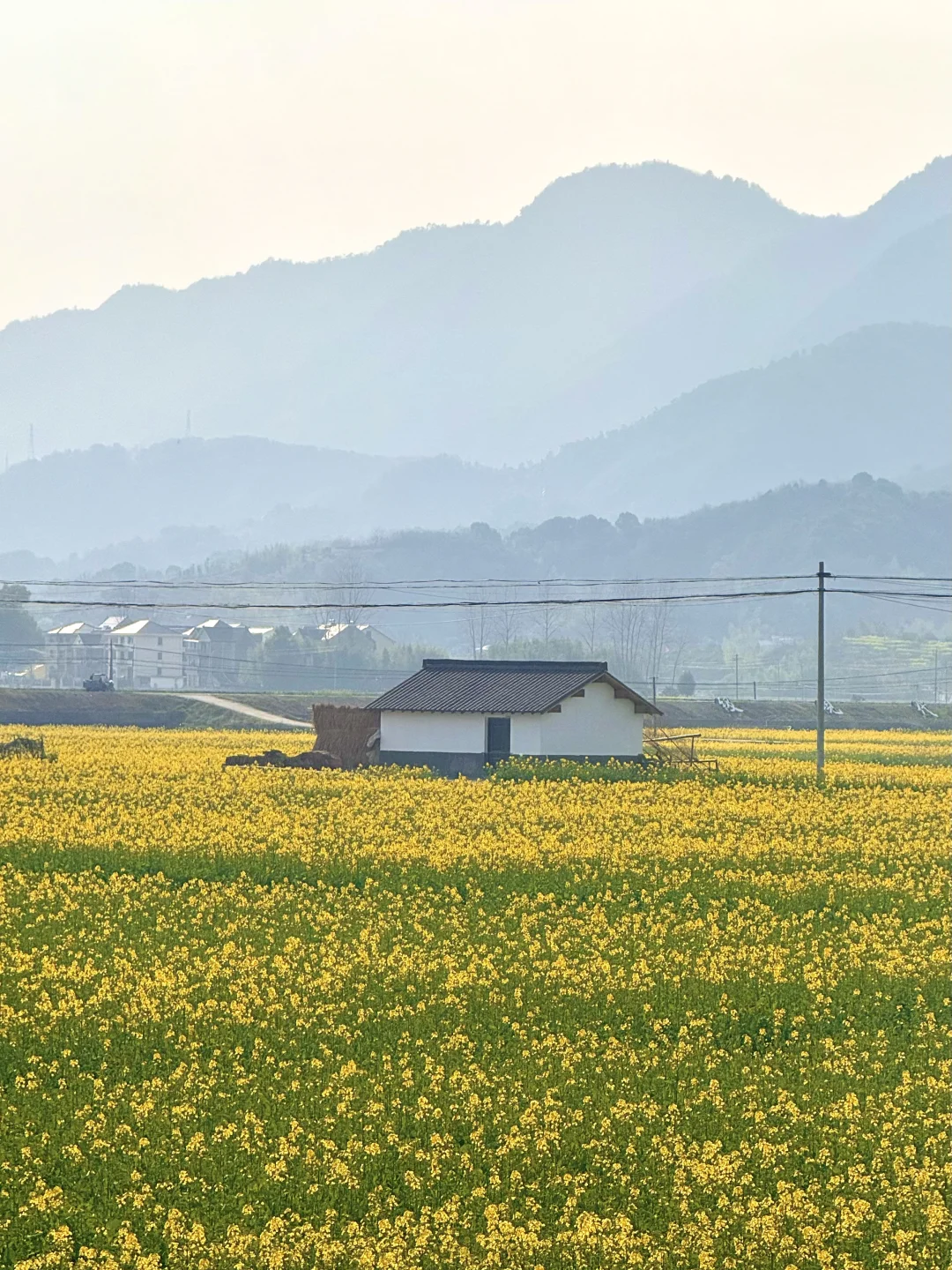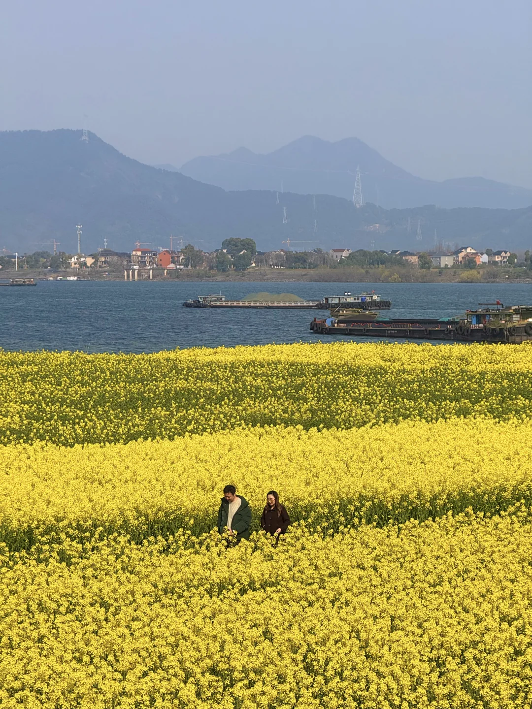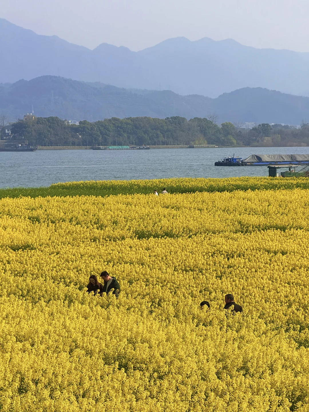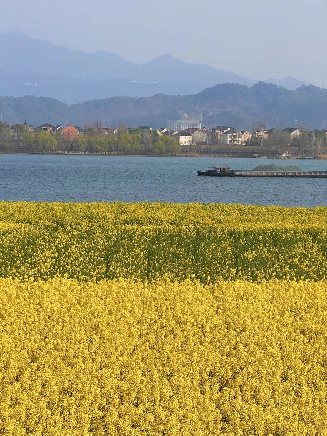 湛蓝的江水,金黄的油菜花 这里不是大理喜洲古镇 而是富春江畔的田园乡村 田野里的春和景明 原来是这般的惬意~ - 📍杭州富阳包家淇村 🚗自驾导航至包家淇村即可 🚇地铁6号线到“桂花西路”,再乘2115路公交车到“包家淇农贸市场” - 📸目前正是花期,可以尽情拍拍拍啦! -