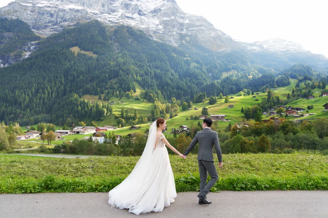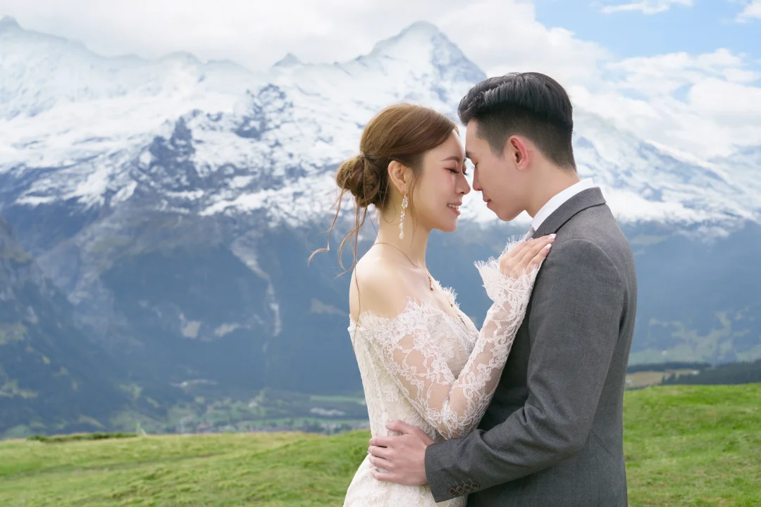 瑞士摄影师雨遥 瑞士旅拍婚纱 格林瓦德梦幻山坡 带着婚纱去旅行 森系婚纱照 瑞士first山