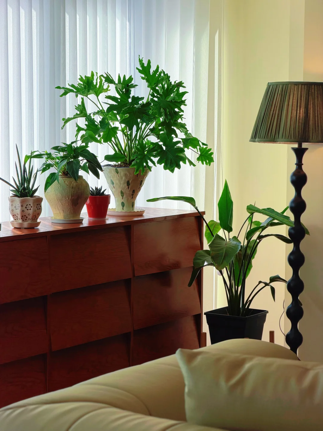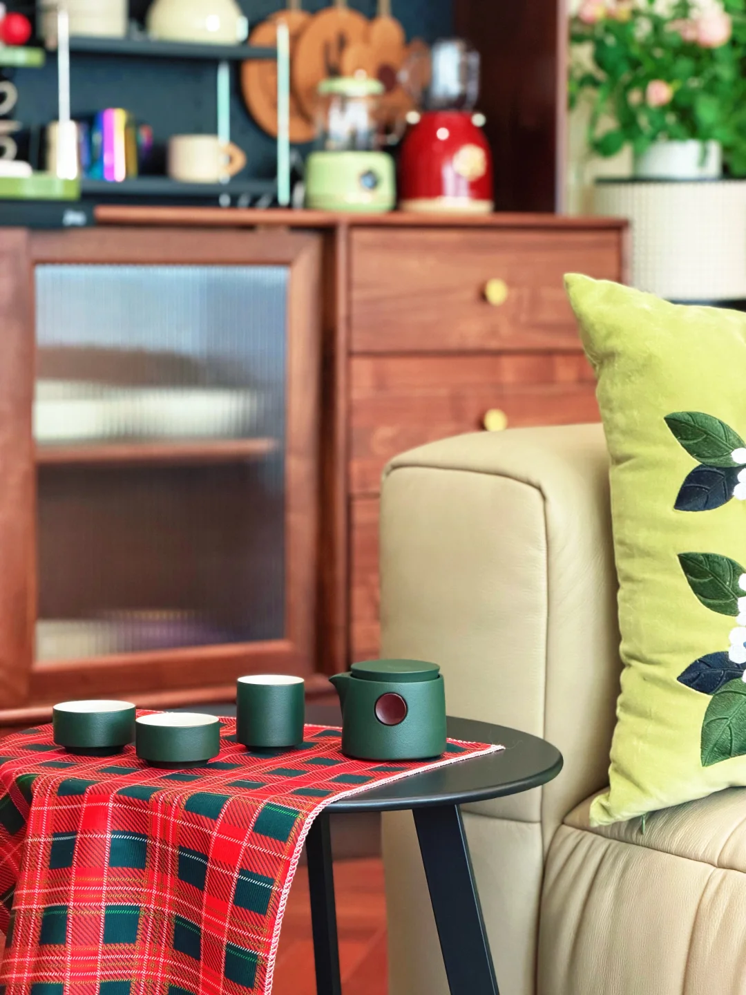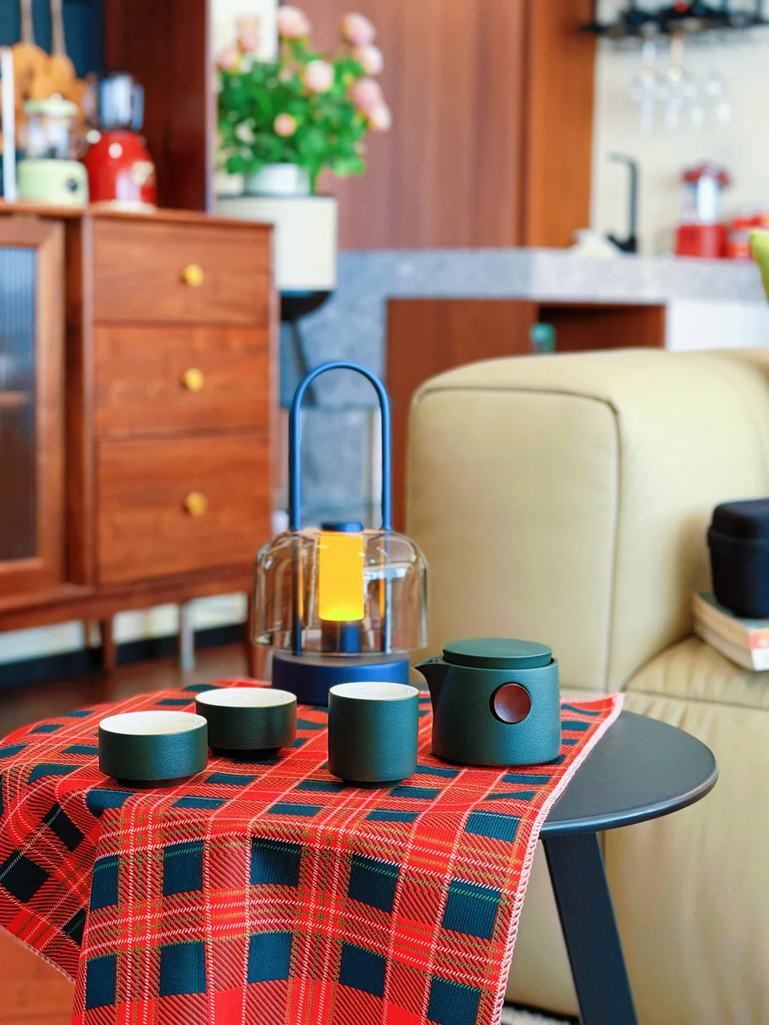 🌿🌿🌿 阳光漫过白纱帘 把绿意揉进木色里 不用刻意布置 简单用红黑格纹的桌布铺展开来 像把春日的暖阳裁成了一方小天地 木色的沉敛、绿意的鲜活、灯光的温柔撞在一起 就是特别舒服的宅家状态。 不必赶时间 不必想琐事 不必刻意营造仪式感 就这么窝在沙发里 煮茶、发呆、放空 原来生活的美好 从来都不在别处 就在这满眼绿意的方寸之间 藏在这茶香袅袅的日常里