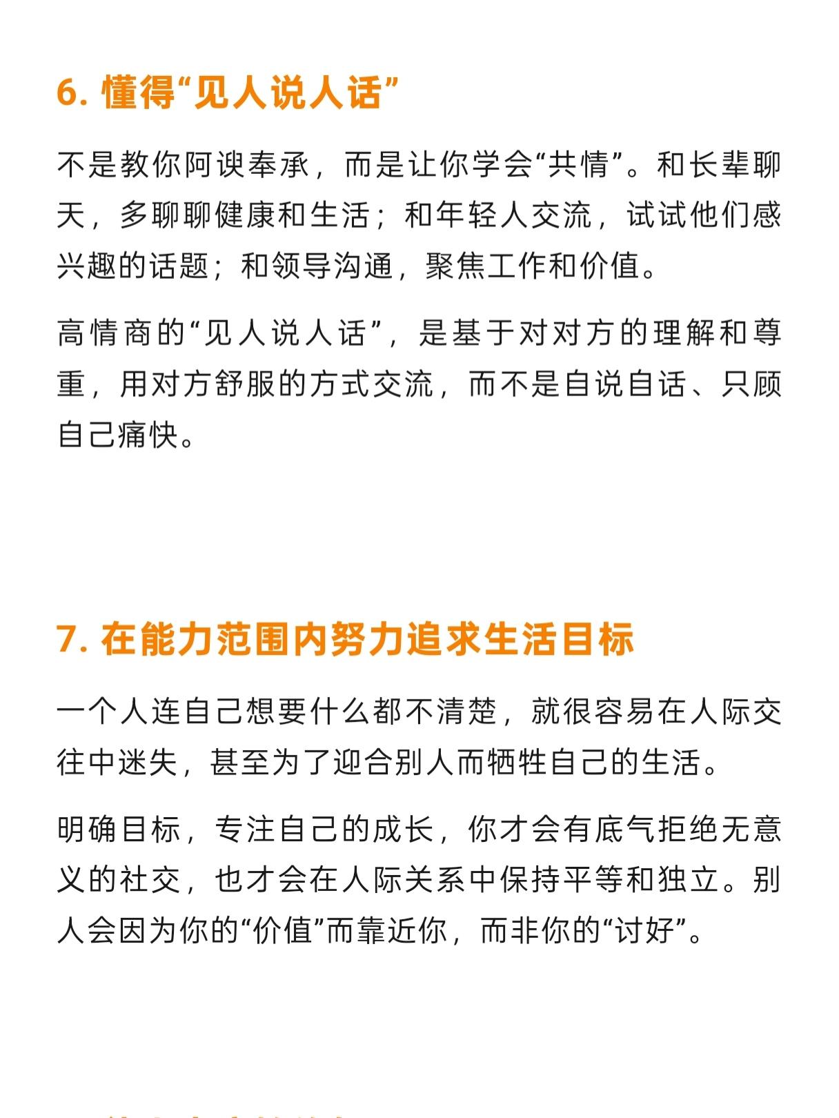情商高到“可怕”的10个细节!你拥有几个 高情商,是一生的修行。 这10个细节,是基于“尊重、共情、边界”的底层逻辑。 高情商,不是让你变成“万人迷”, 而是让你在人际交往中,既不委屈自己,也不冒犯他人,活得通透又自在。 🫂 从今天起,把这些细节融入生活, 你的人际关系会越来越顺, 你也会成为别人愿意靠近的“舒服的人”。