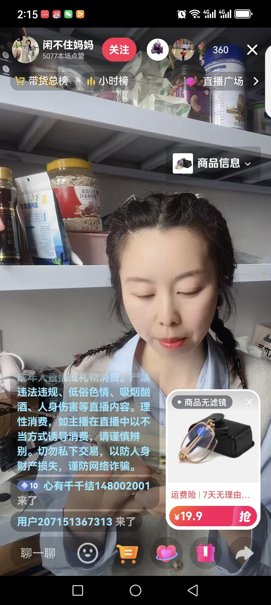 田静现在直播带货主打卖老花镜,直播间人气还不错,有三百多人。 在她直播间待了一会,发现她说话不急不躁,绵里藏针。你不回味一下,很难领悟她要表达的意思。 有网友说,她过个年把自己吃胖了,她也不反驳,顺着话说,自己胖了。 又有网友说她,其实看起来一点也不胖。 这才真正打开了她的话匣子。她说,自己净身高162,没有结婚之前98斤,结完婚后从来没有超过110斤。 她现在是102斤,别人说她胖,她也不想反驳。 从这里也可以看出,静静是个聪明人,自己心里有数就行了,不需要向那些无聊的网友辩解。