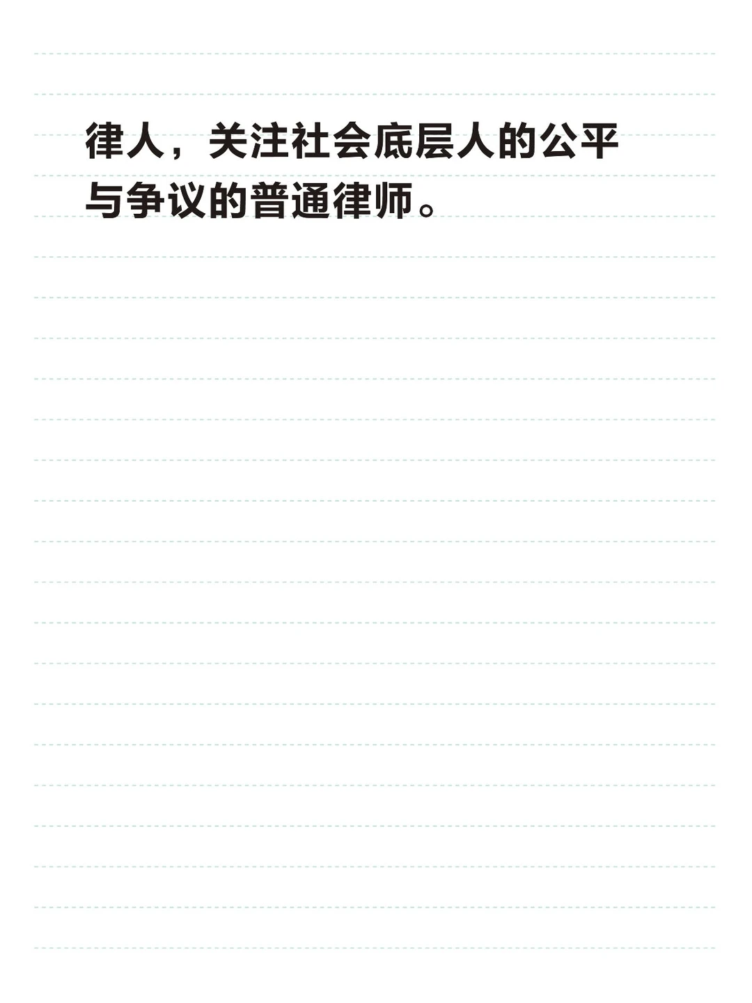 我不会在乎他人用异样的眼光来看我,我始终做好我自己,做一个法律人,关注社会底层人的公平与争议的普通律师。