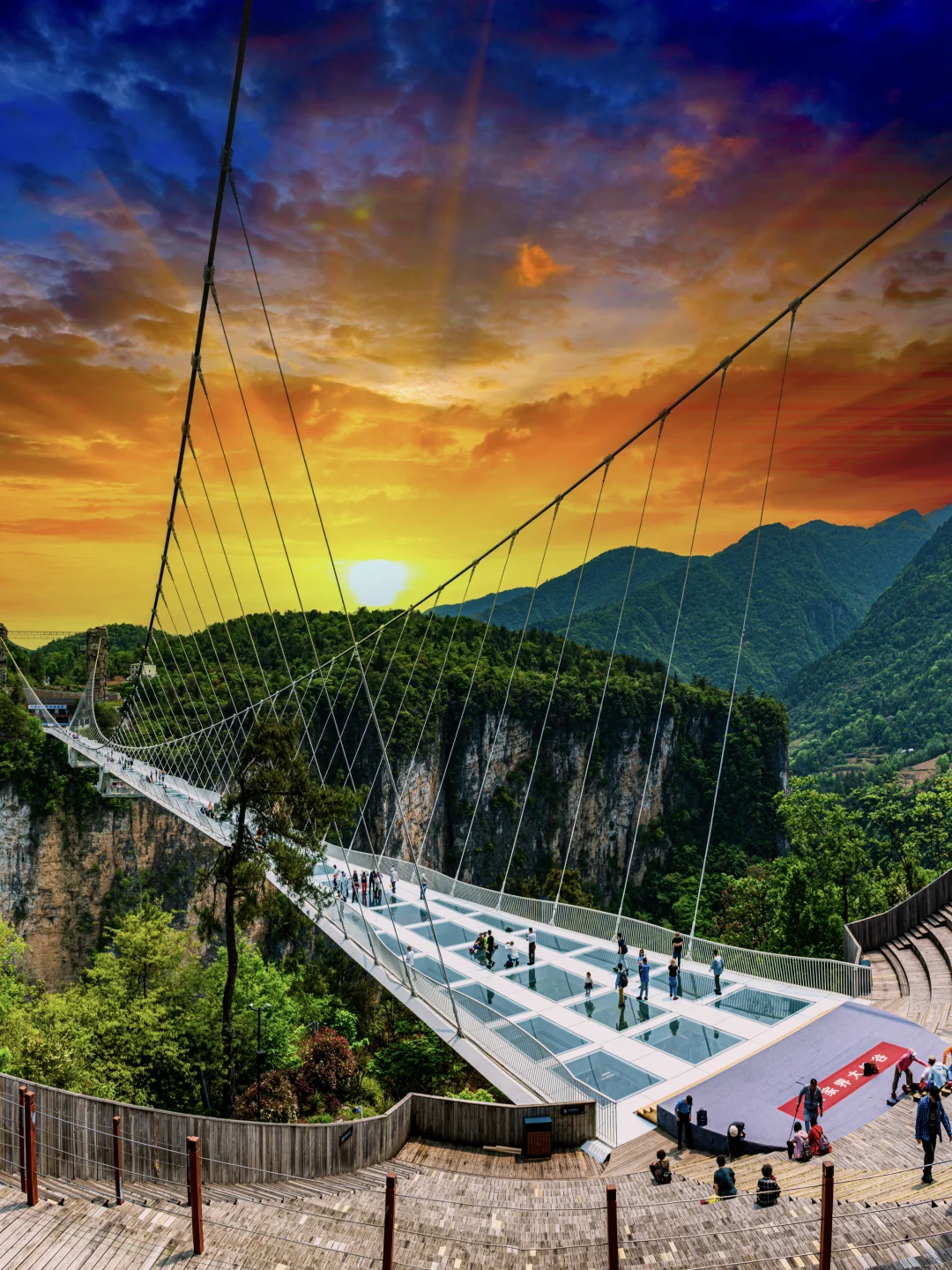 2⃣️天下第一桥:天然石桥横跨两峰,广角镜头拍出来很震撼,带一个国旗稳稳出片。