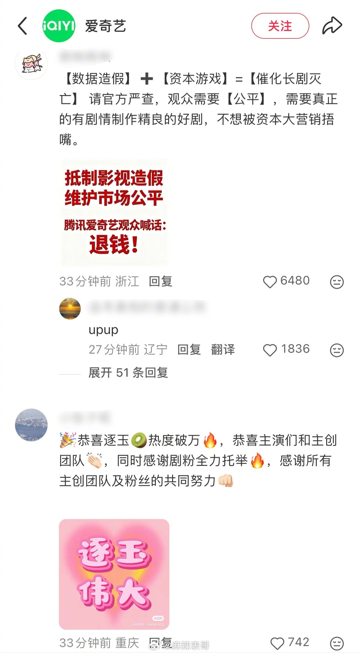 《逐玉》爱奇艺热度破万后,评论区都在要求退钱