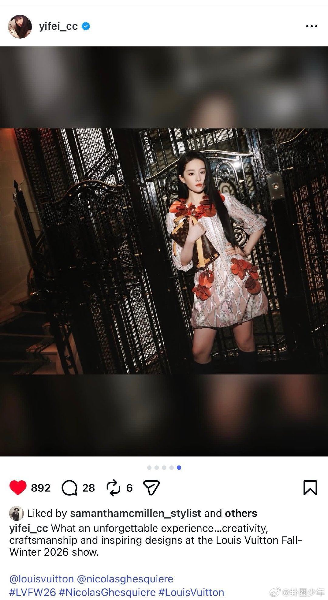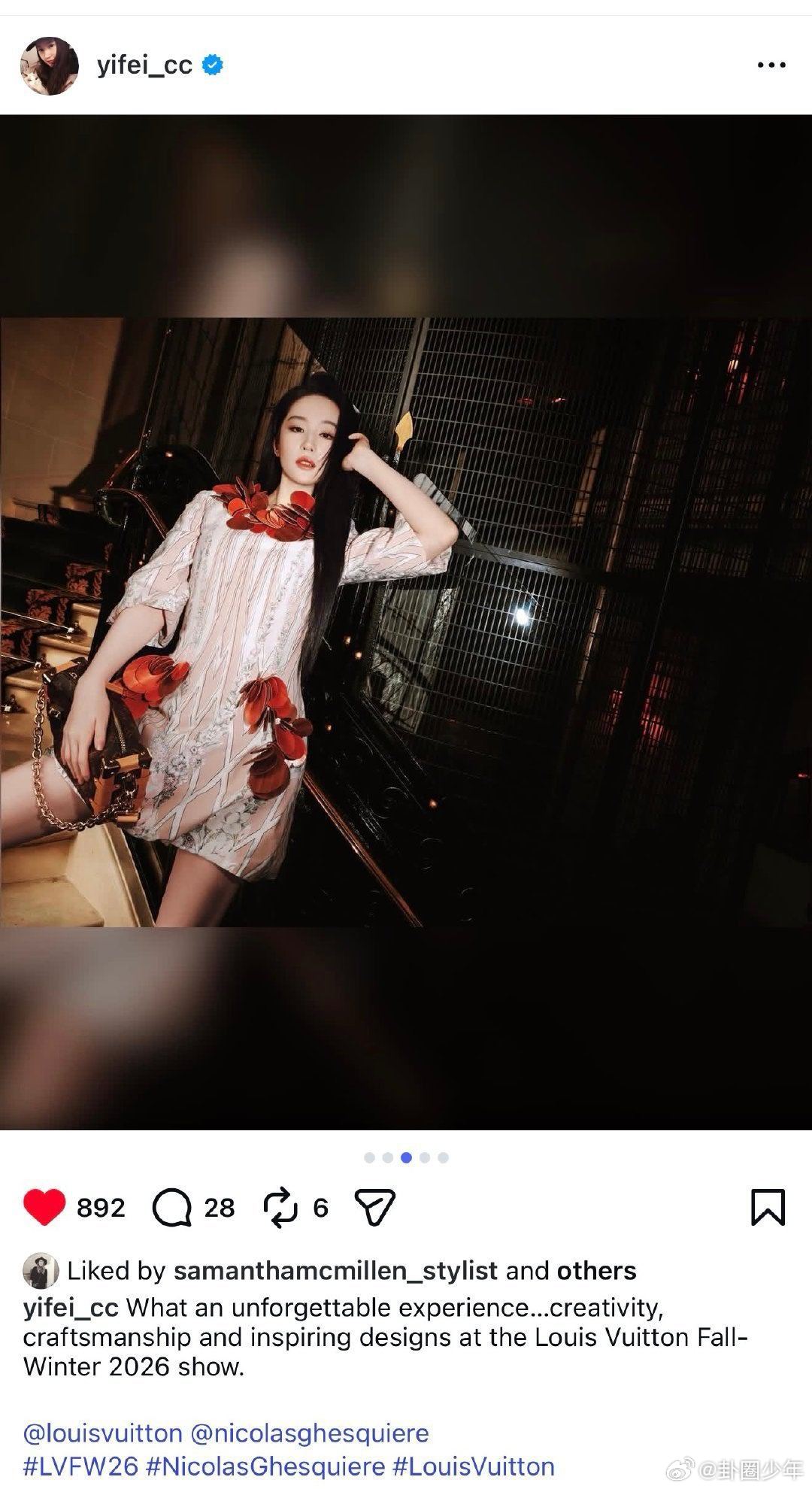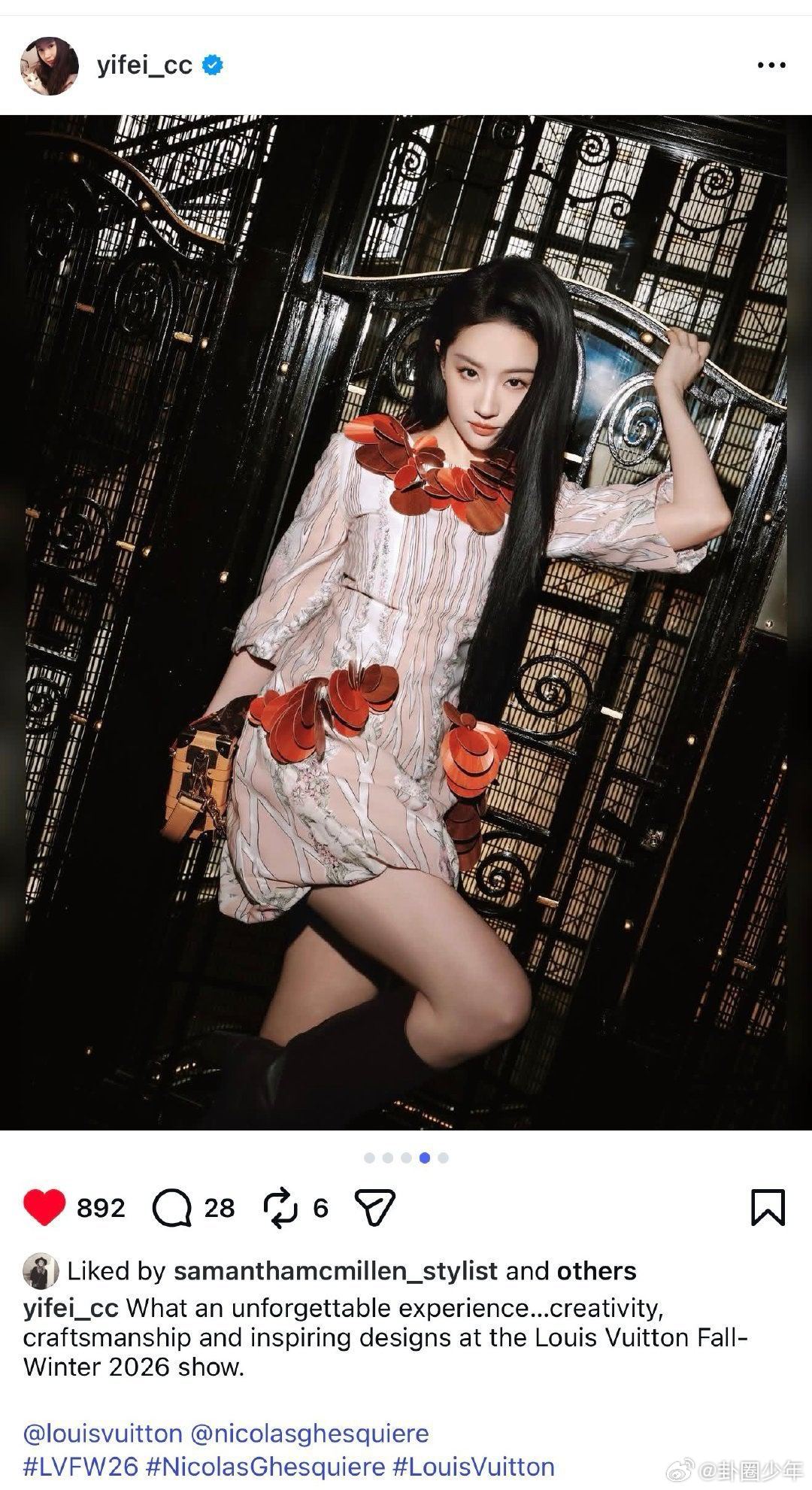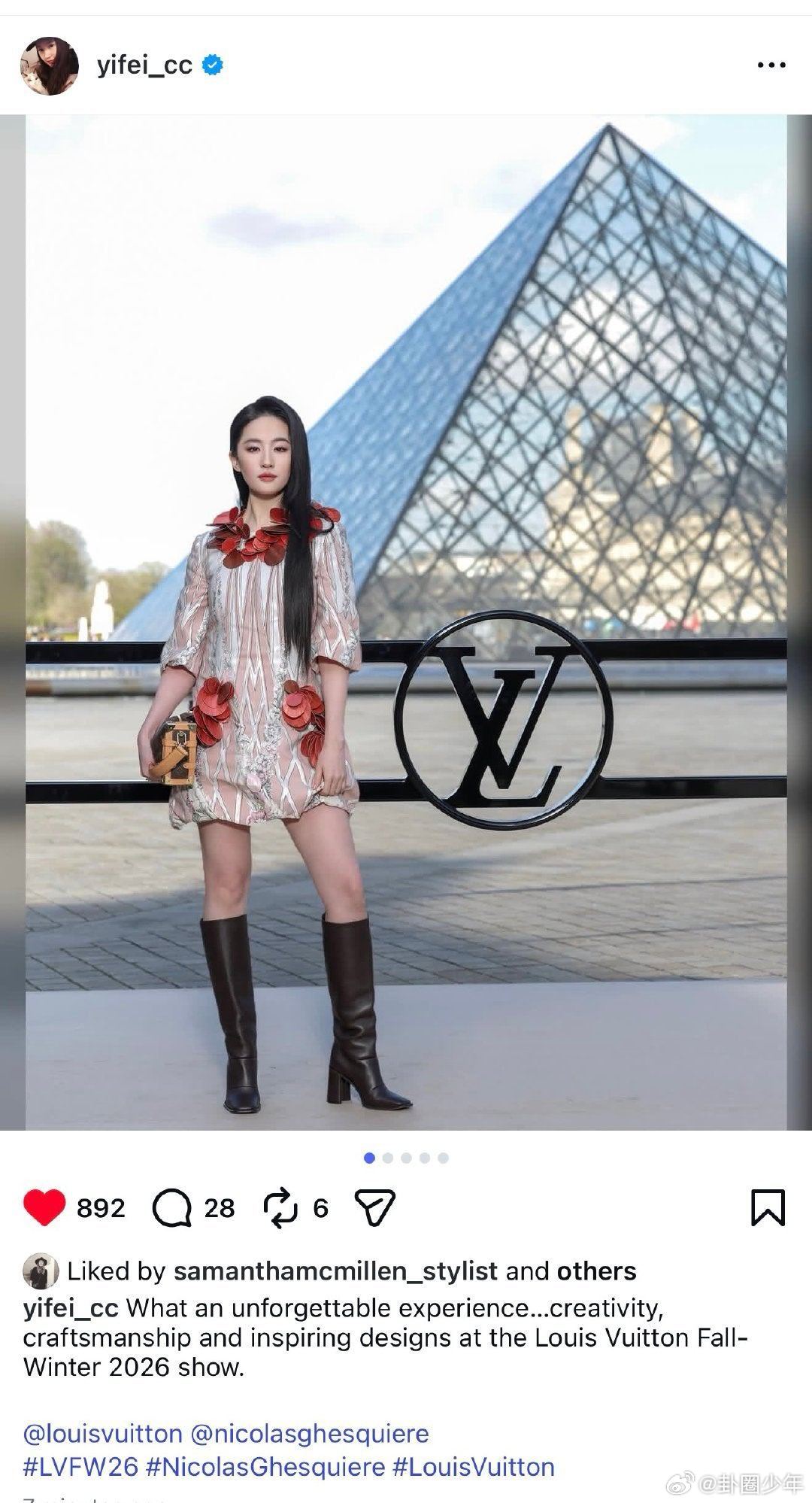 刘亦菲看秀感想刘亦菲lv大秀观后感刘亦菲行走的红玫瑰,东方美惊艳巴黎。生图能打、