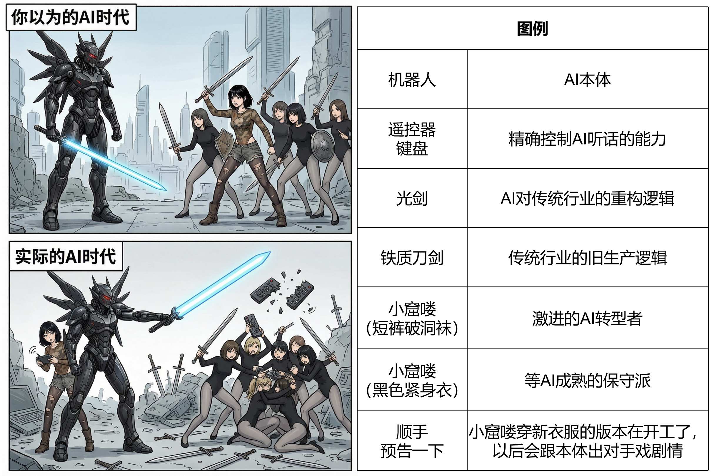 当一部分创作者开始用AI的时候,起跑枪声就已经响了,AI当然不懂内容行业发展逻辑,不懂艺术形式的情绪价值,不懂具体到人的深度人格理解,但那又如何?操作AI的那部分创作者自己把好关就好了,另一部分不懂这些知识或者不用AI的创作者,反而缺乏自己的护城河。