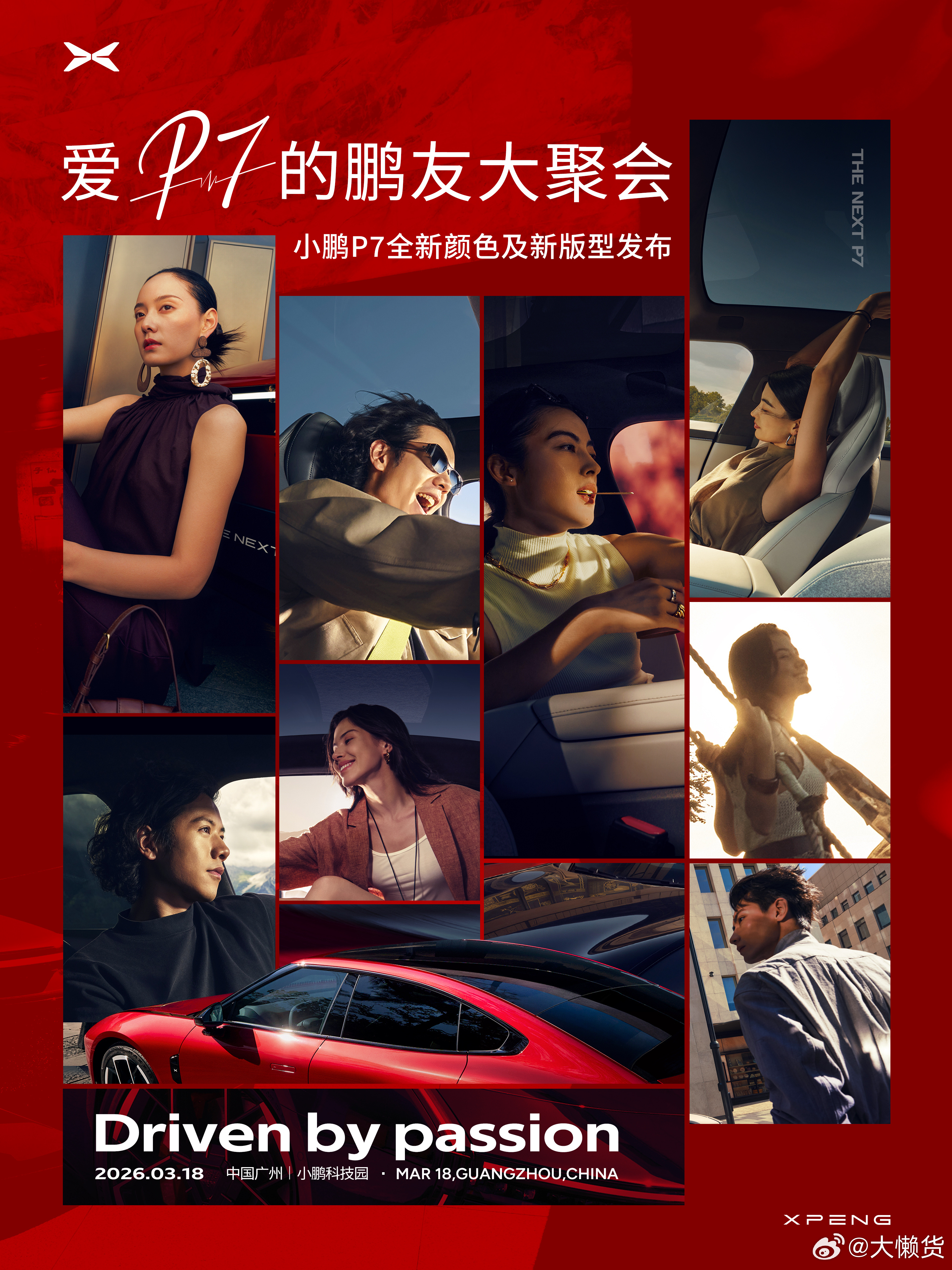 小鹏P7全新配色星曜红小鹏P7新色发布定档3月18日