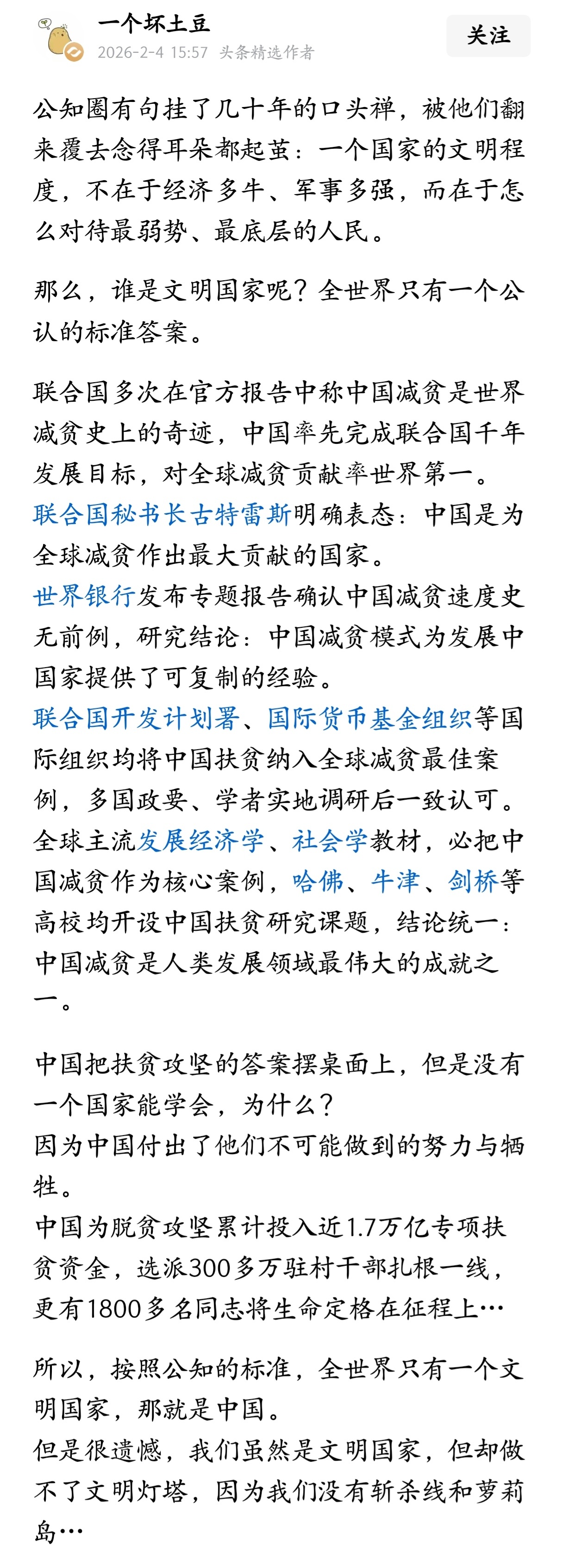 这篇文章讲的太好了,按照公知的标准,全世界只有一个文明国家,那就是中国。