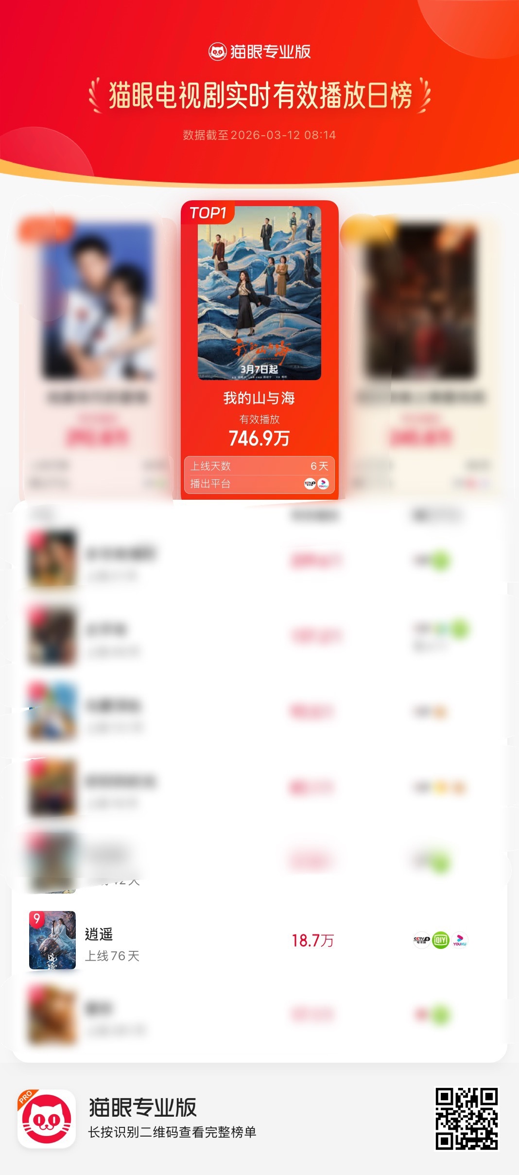 谭松韵选本眼光昨天《我的山与海》德塔文破2。猫眼电视剧热度第一,播放量第一。