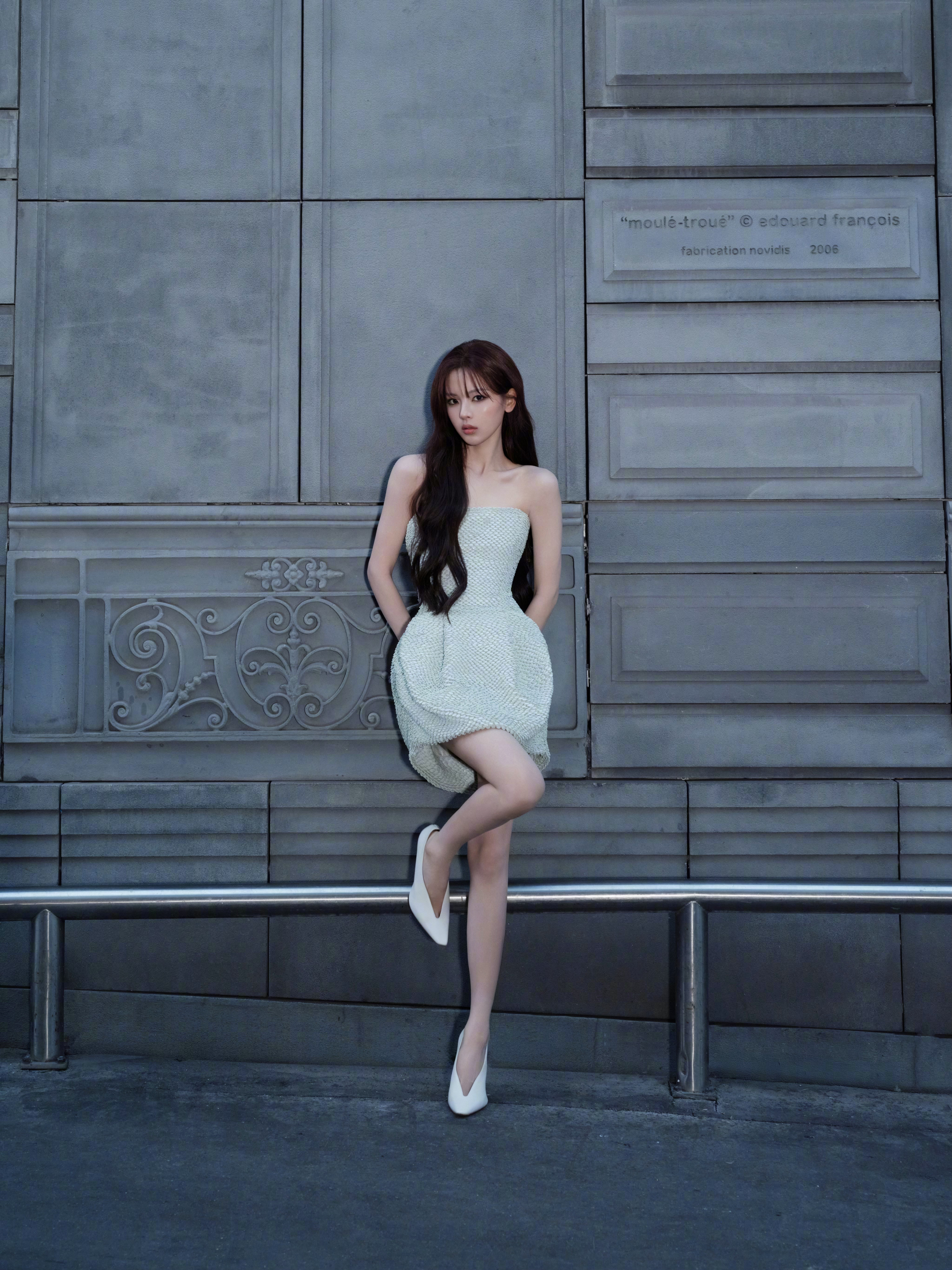 出席巴黎世家冬季26发布秀的🌸🍃:杨超越,身着巴黎世家秋季26系列抹胸迷你裙,配搭披肩长发,很清新又青春美艳的一身造型,很适合她的气质。