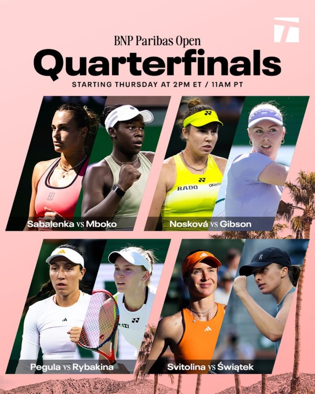 明天印第安维尔斯全部8强战