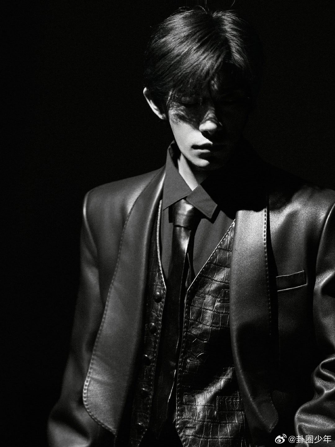 易烊千玺黑皮衣打领带易烊千玺黑皮衣黑领带易烊千玺全黑格调,矜贵凛冽。利落气场,一