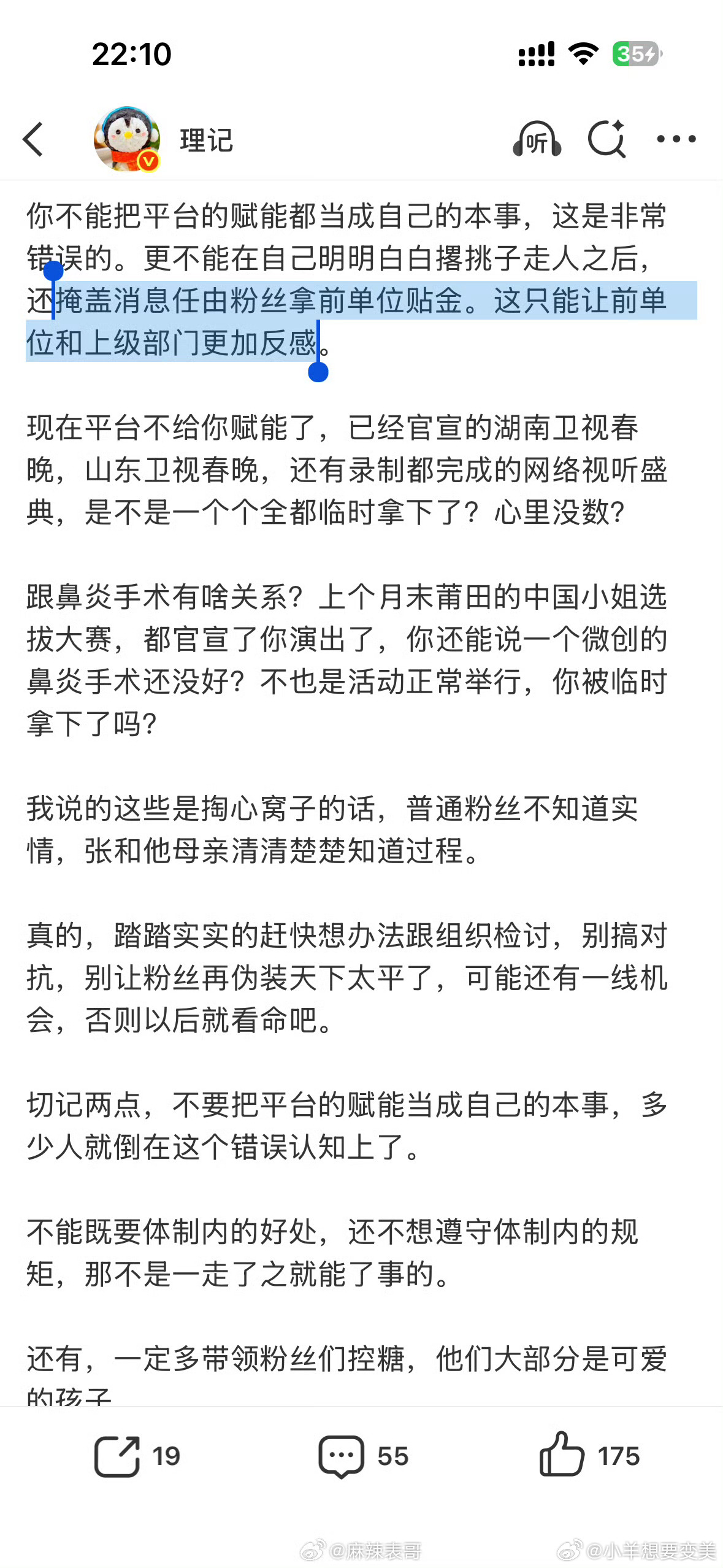 理记再度发文,直指张艺兴与国家话剧院的争议持续发酵。其认为,张艺兴身为国字号背景