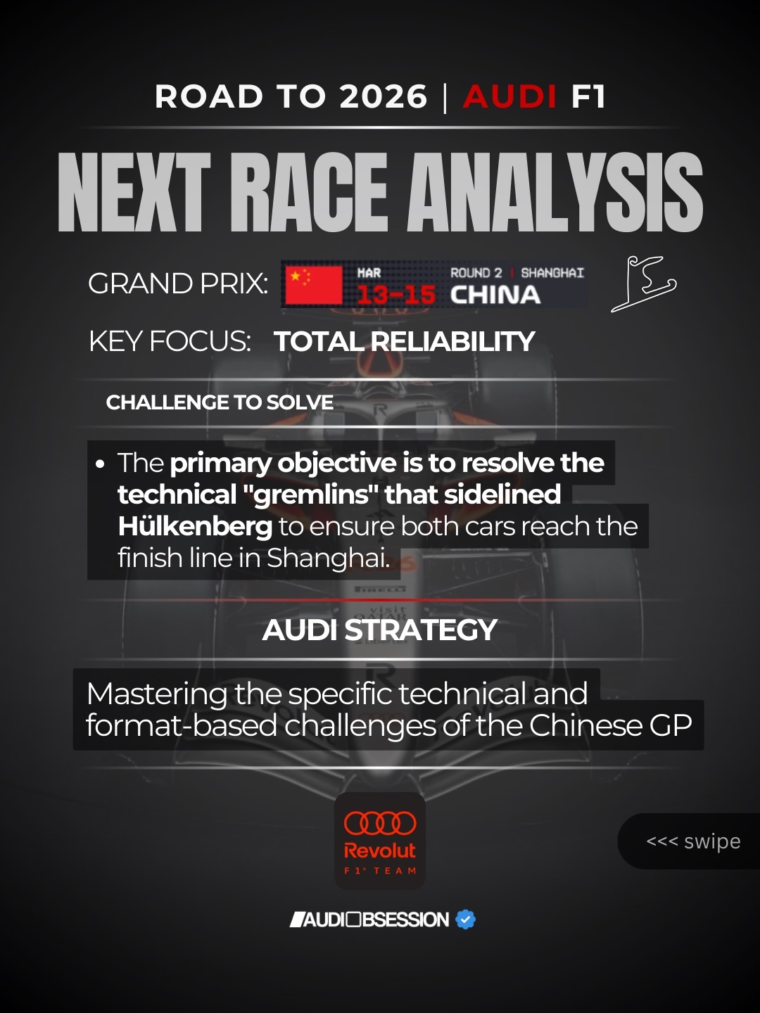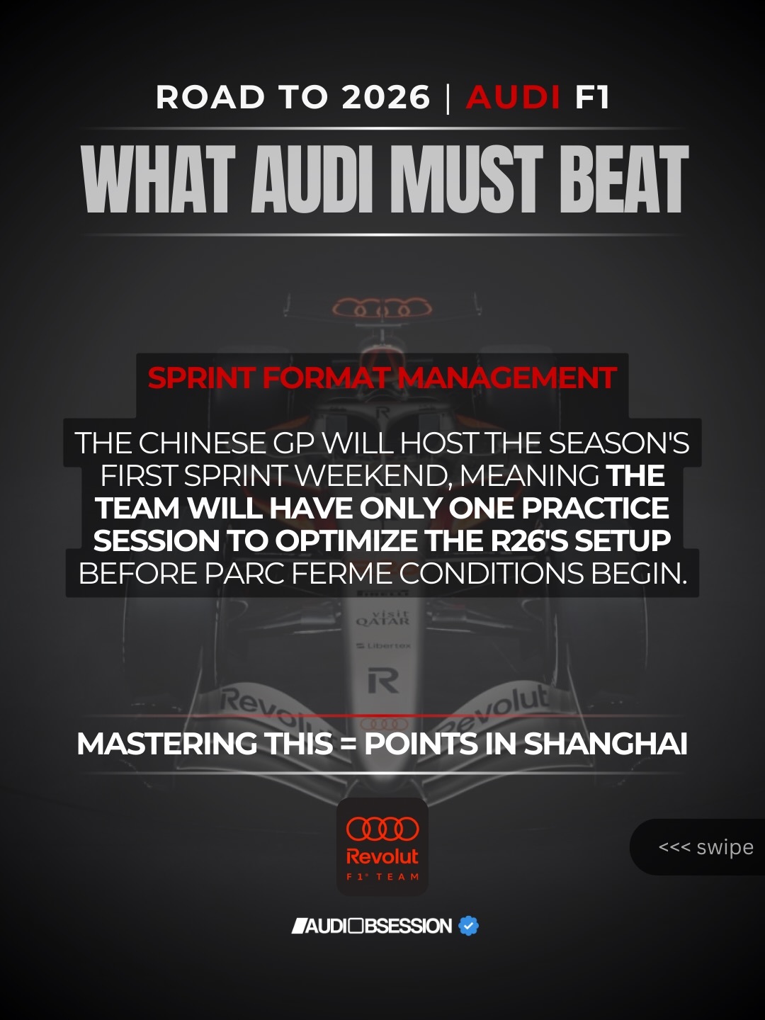 奥迪官方获悉:欢迎来到奥迪痴迷系列赛的另一周:通往2026之路|奥迪革命F1。