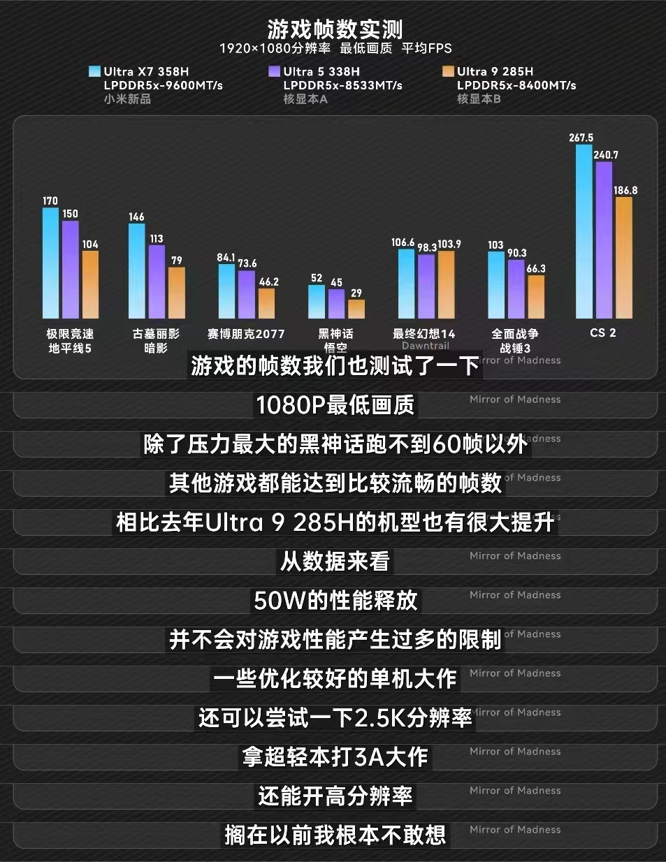再加上今年英特尔新一代Ultra确实挺猛,中功耗性能比上代提升很明显。很多公斤本以前40W性能释放就算不错了,如果小米这次能做到50W,那确实有点狠。别小看这10W,算力密度会直接拉开差距。
