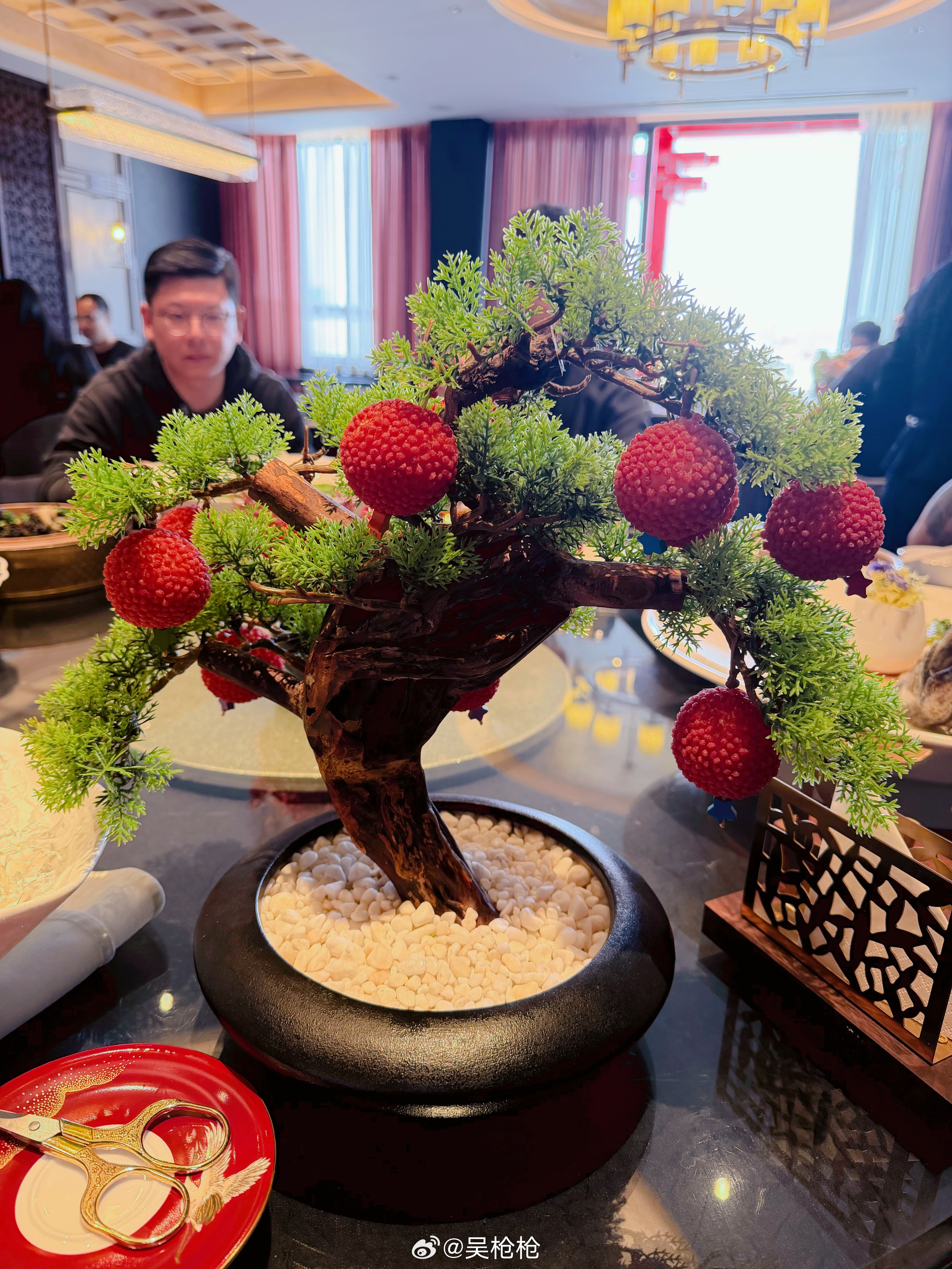 中午恰顿奥迪的饭 这个甜品特别有意思需要自己剪下来 感受采摘的乐趣其实是个麻团