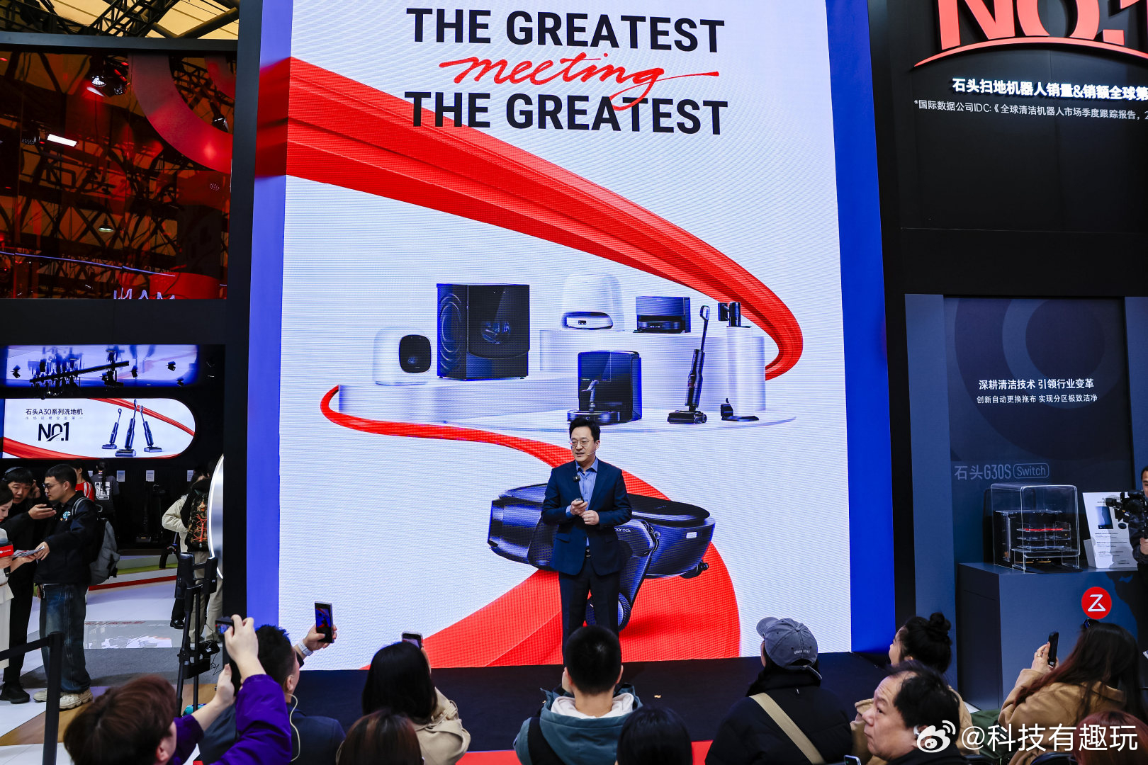 石头科技AWE 2026展台现场真的太热闹了,全场人最多的地方,几乎都集中在G‑Rover身上,能爬楼梯、会越障,动作又稳又丝滑,亲眼看到比视频里震撼太多,完全是把清洁机器人做出了未来黑科技的感觉。更惊喜的是现场还请到了何同学空降,近距离拆解讲解石头的技术,台下围得水泄不通,气氛直接拉满。不愧是全球扫地机器人双第一,产品够硬核,现场也真的够有看点。这波中国智造,真的越做越强了!有时间建议大家都去看看AWE2026AWE2026有哪些亮点中国扫地机器人长出了手和腿中国智造领跑全球