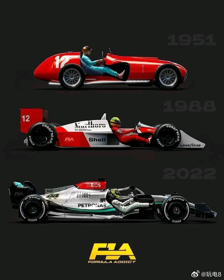 F1赛车为什么躺着开汽场全开 总的来说,F1的车手坐姿经历了一个漫长的“人机工程学为车身气动让路”的演化过程,趋势上是越来越“躺平”的: