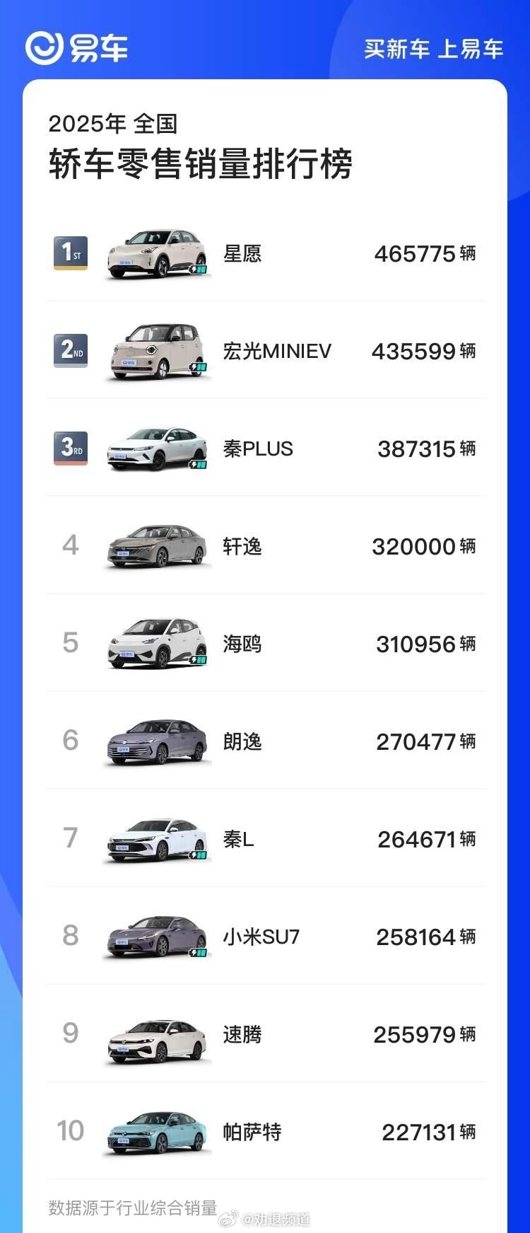 感觉新能源车这波购置税补贴退坡对销量影响还挺明显的尤其在轿车市场TOP 10就只剩下一台星愿是绿牌了