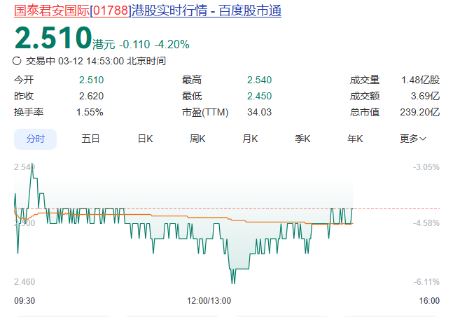 截止发稿,港股国泰君安国际(01788.HK)下跌4.2%。#国泰君安国际一雇员被香港廉署拘留#