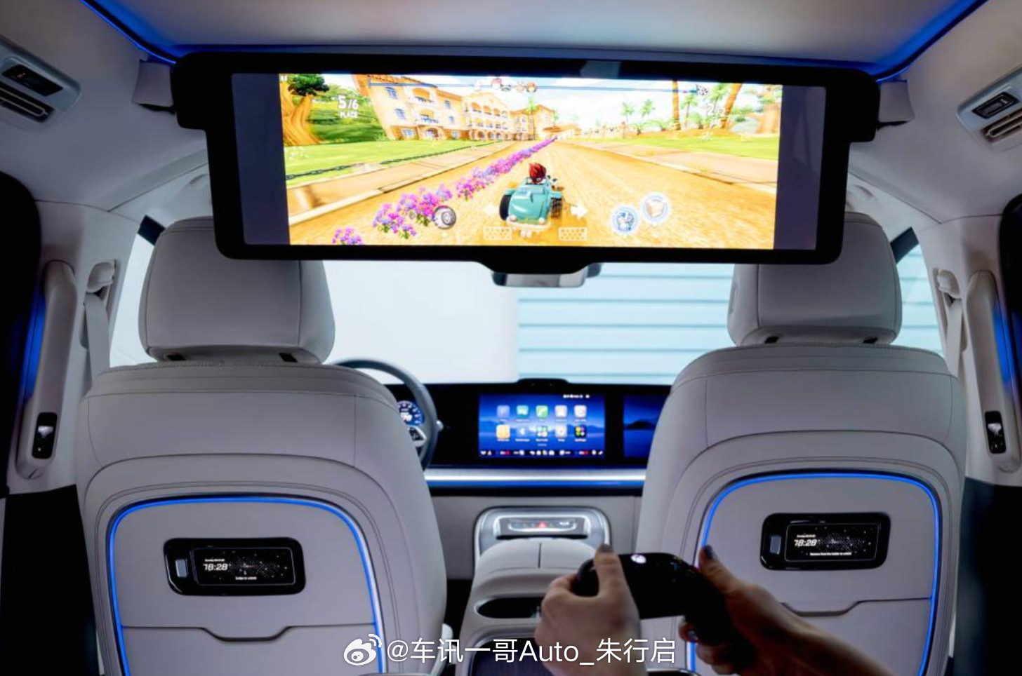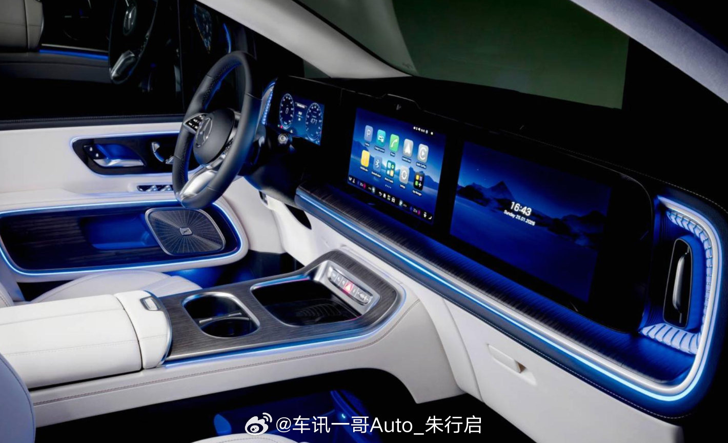 内饰部分,全新奔驰纯电VLE应用10.25英寸仪表屏、14英寸中控屏以及14英寸副驾屏,应用奔驰自主研发的MB.OS架构。