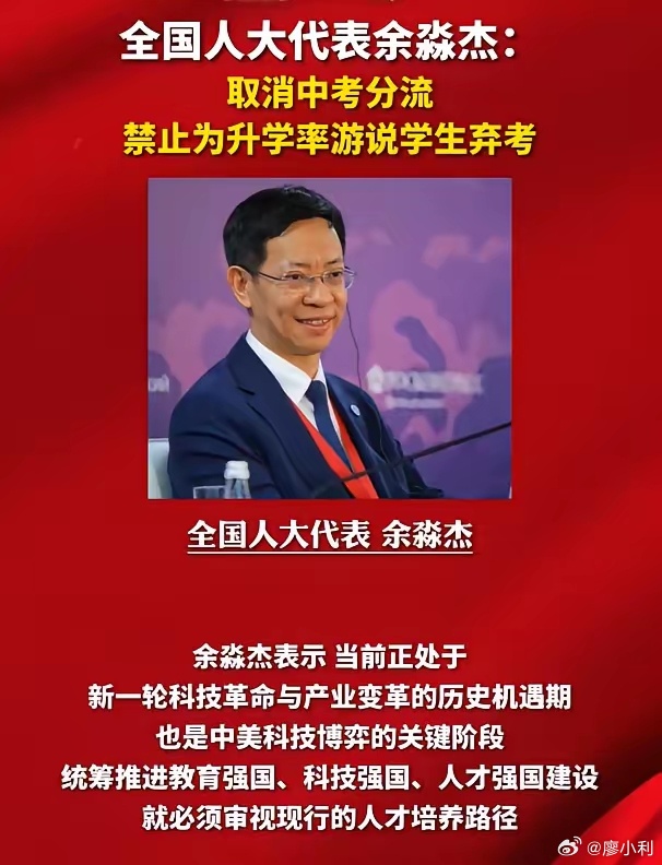 代表建议取消中考分流我支持取消中考!现在大多数中学生,在初三的时候才十四五岁,正是花季雨季的豆蔻年华,让他们面对如此残酷的淘汰率超过50%的中考选拔,的确显得有些不近人情。