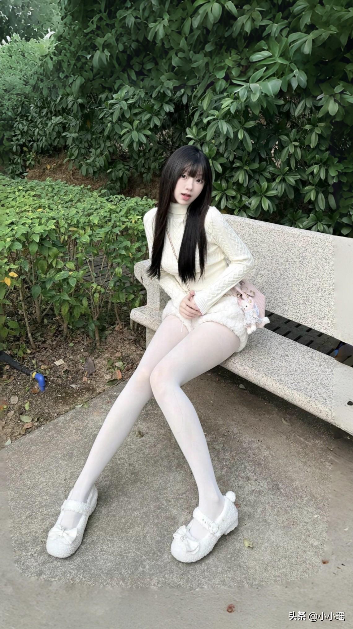 白色丝袜的简约搭配, 完美展现了少女风韵。 不是黑色丝袜不潮流, 而是白色丝袜更