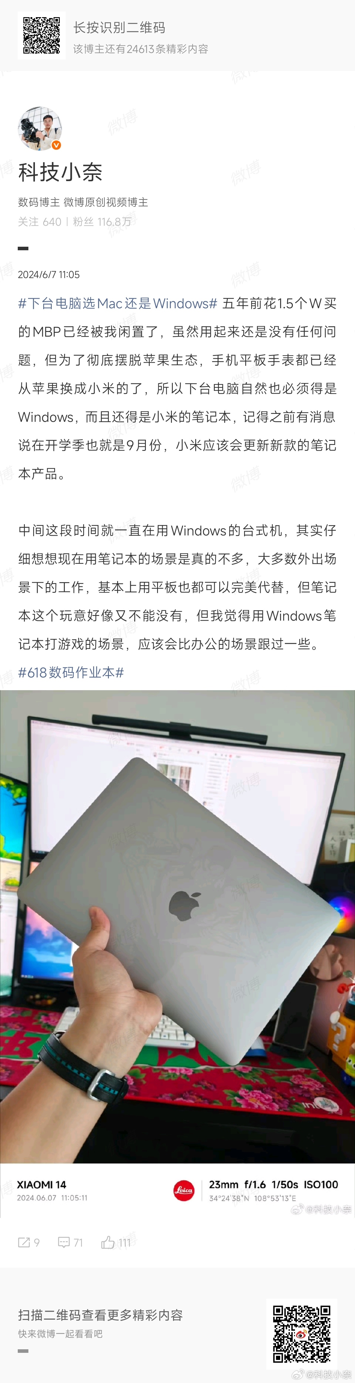 小米笔记本总算是要来了!前年24年那会,我就一直等着小米笔记本更新,来换我这台吃灰的带touchbar的老macbook了,终于终于是等到了,也不知道以旧换新的话,这当年1.5W的老macbook还能值多少钱。