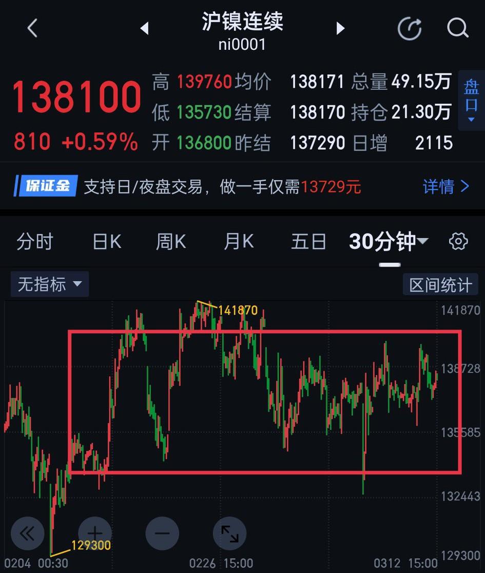沪镍,是攻、是守,夜盘或见分晓。 沪镍,当下仍处于多空纠缠状态,操作上"多、空"都不宜过分放大格局。更不要抢跑,一定要等结构确认后再择机入手。如此操作,会用压缩利润换来更高的安全性。 细节上,沪镍日盘的回调,让目前的走势(图1)呈现的是五分钟中枢构建。夜盘观察能否有效站稳137010。站稳,图(1)的五分钟中枢将完成构建,后续可观察是否能顺利形成向上离开段。如不能站稳,短期走势仍将处于混沌期,后期走势大概率仍会回归图(2)区间的震荡。