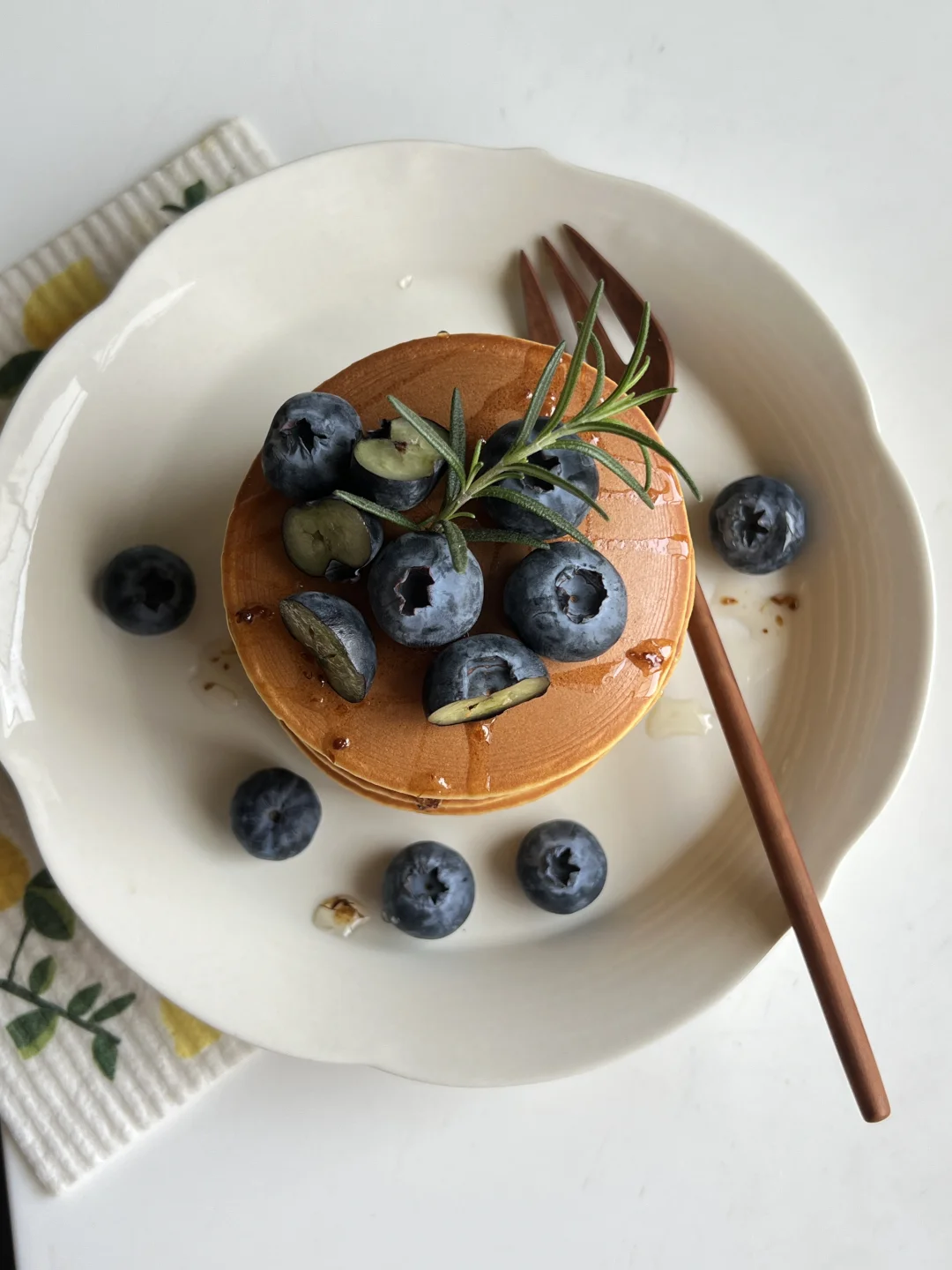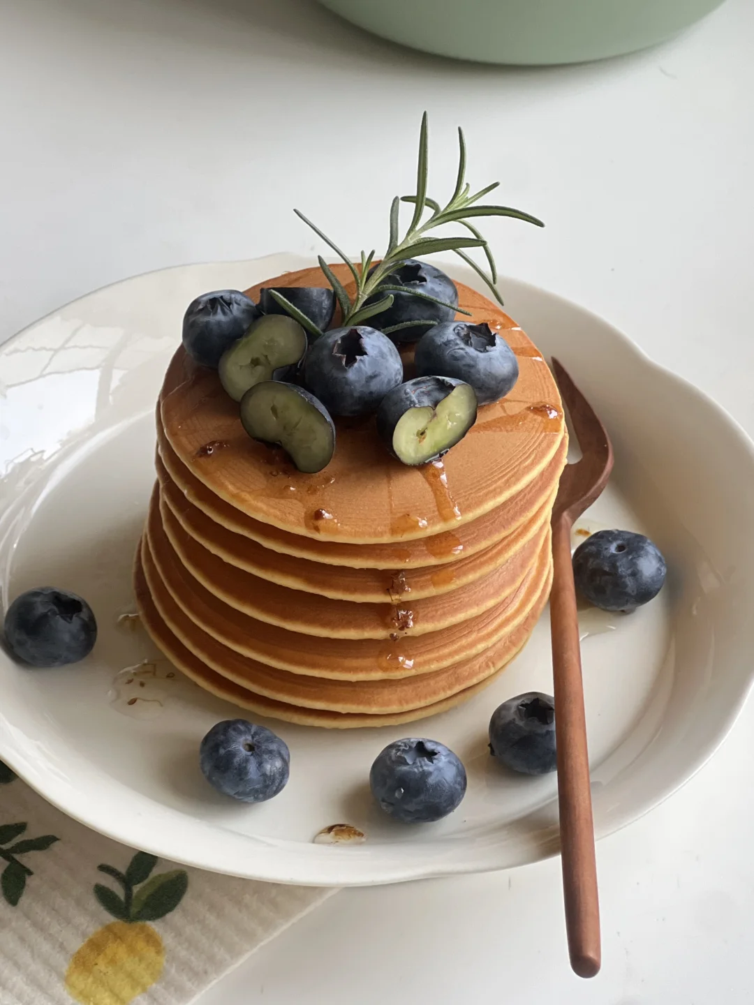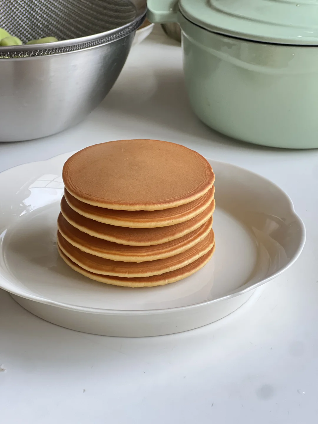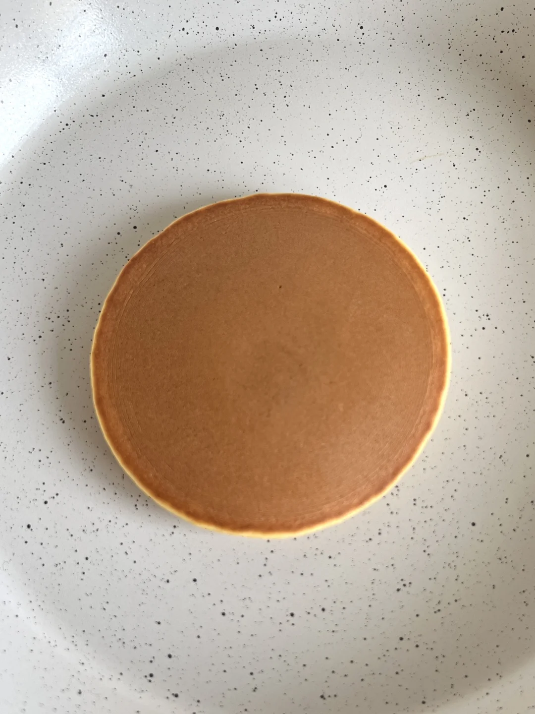 4️⃣ 看气孔完全显现,面糊表面开始干燥,就可以翻面了,松饼上色刚刚好