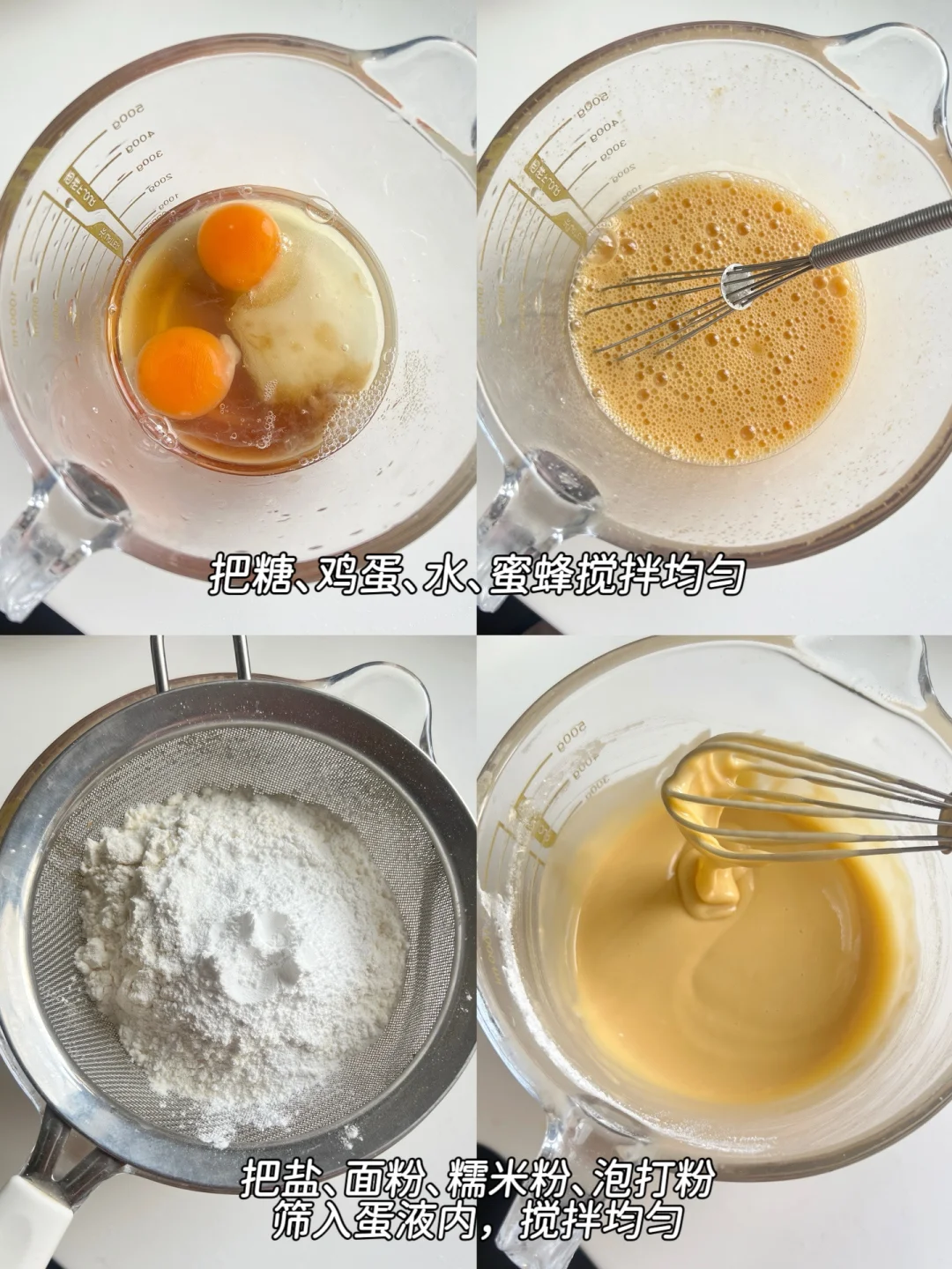 1️⃣面糊要有流动性,干了加水,稀了加粉