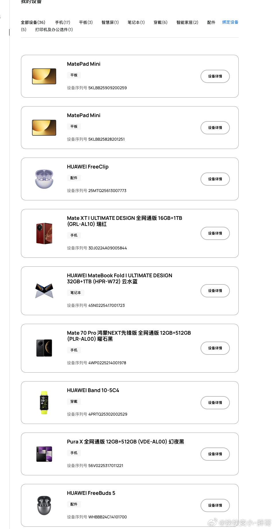 图一本人购买过的华子产品,其中包括 俩台三折叠,一台折叠电脑图二本人以前生活账号,不想被开盒所以打码,有迹可循的从 19 年到 20 年就开始每年支持🌸的旗舰剩下图片都是线下专卖店购买记录,有些在第三方线下渠道购买。我就想问一下,我这么支持他就因为说了几句话就要无差别投诉我的账号吗?更别说我很多是在打击谣言,有些博主制造你们的正面谣言,咱们不能让消费者买到手之后发现货不对版吧?回头来他们会说是博主宣传导致的吗?他们只会觉得这是你们的宣传口径。支持国产不是无脑支持,有问题说问题才能更好的进步,如果有问题不能说试问一下谁愿意好好做产品?我可以说互联网上包括 KHL 有几个有我这么大的支持力度?99% 的🌸粉能有我这样的吗?当初差点订购 M9 因为家里有好几台 suv 了才作罢买的 MEGA